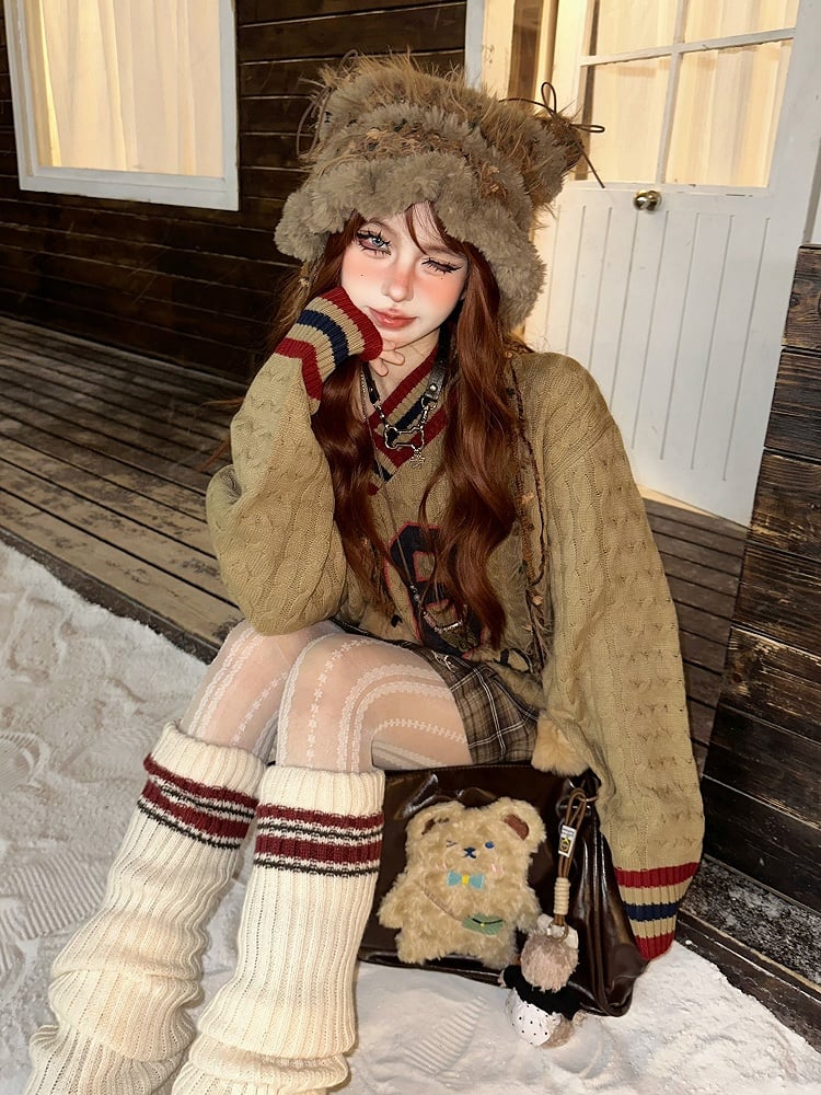 Orange Number Sweater Pattern and V-neck Letter Kawaii