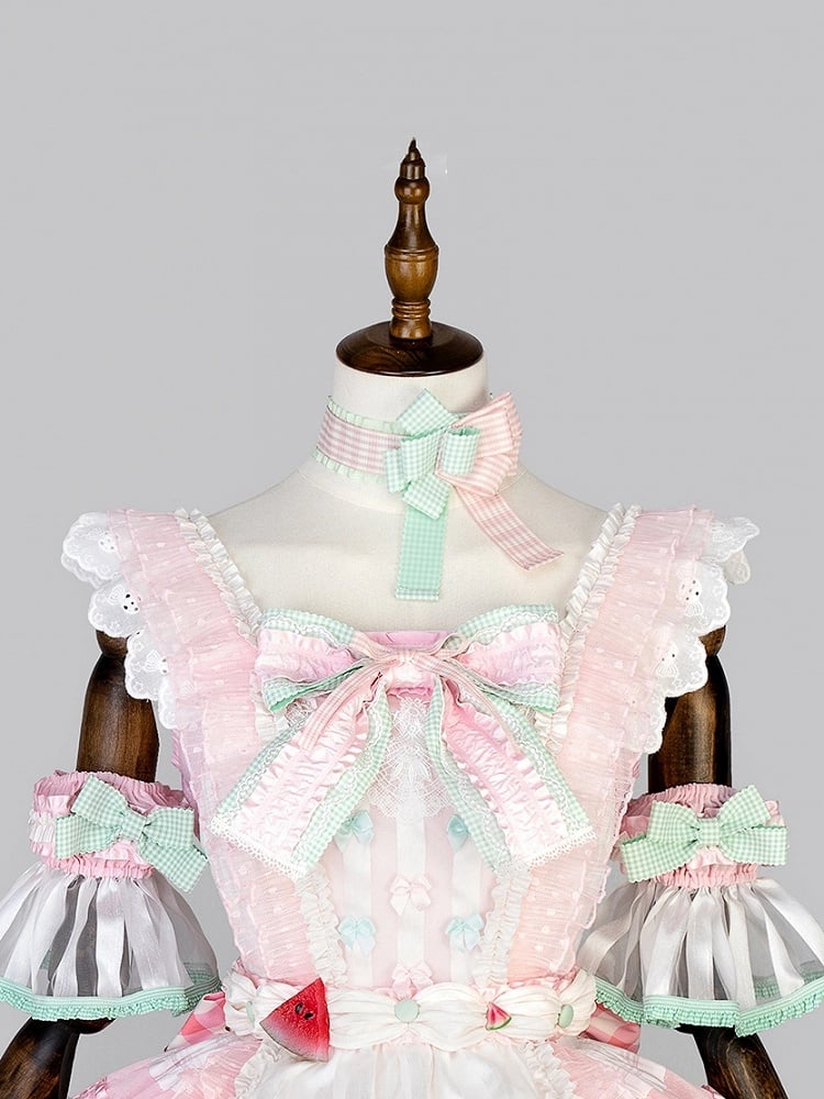 Rosa und weißes Old School Lolita Fashion Kleid Bowknot Detais Lolita JSK Set
