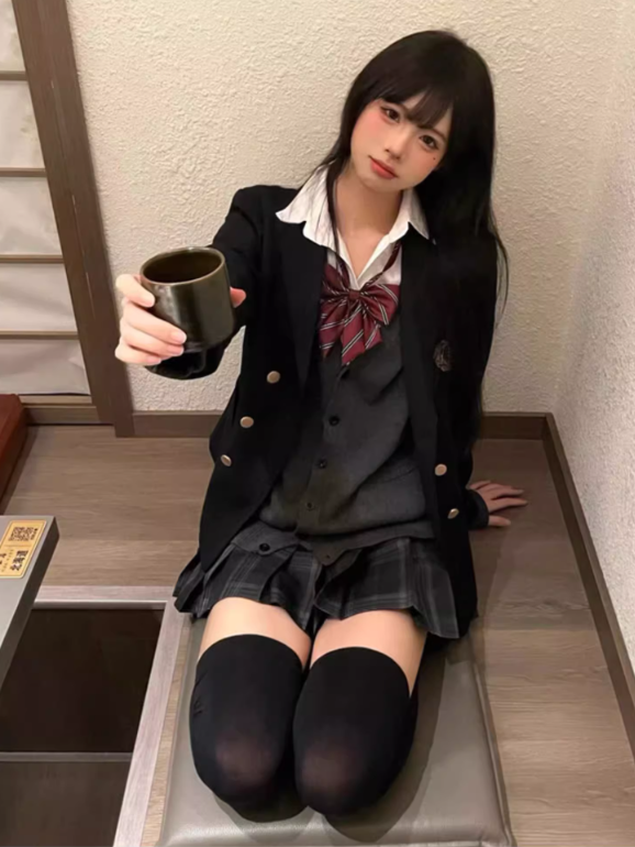 Dunkelgrauer 39CM JK Uniform Faltenrock mit Karomuster