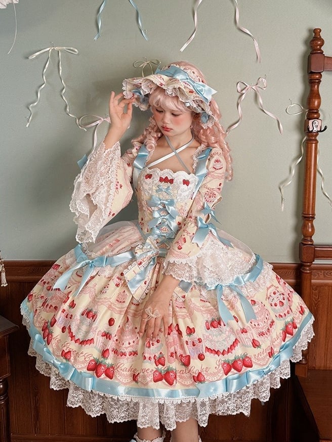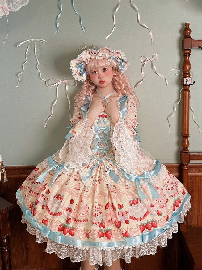 Stück Lange Glocke Ein Gelbes Kleid Mit Süßen Erdbeerärmeln Lolita Kuchendruck