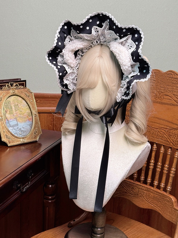 Rosa / Blau / Rot / Schwarz Lolita Polka Dots Haube mit Bärenohren