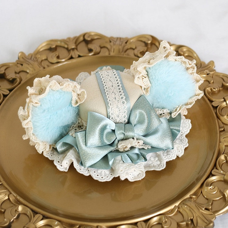 Green / Coffee / Pink Sweet Lolita Plush Bear Ear Bowknot Mini Hat