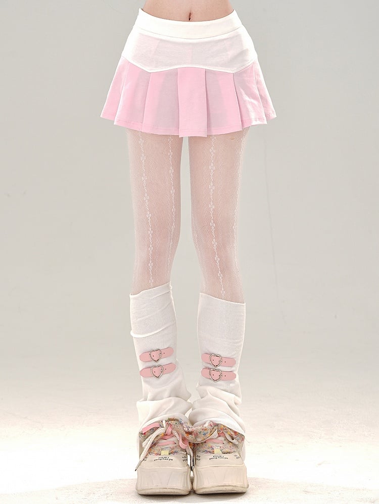 Rosa-weißer Minirock mit Farbblock-Plissee