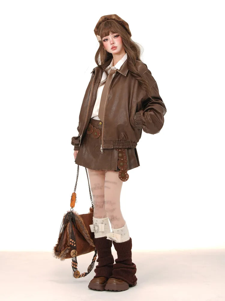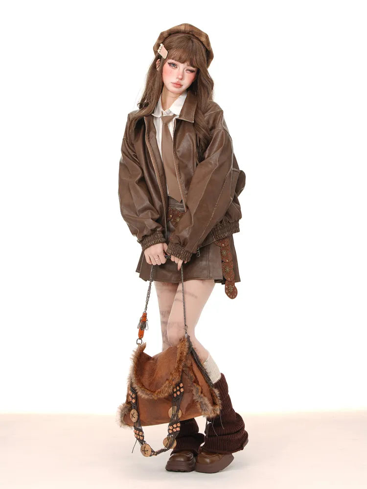Faltenrock PU Braun/Rosa