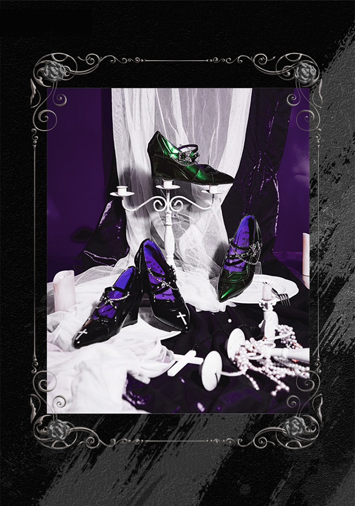 Spitze Zehenpartie Grün 7cm Mary Heel Chunky Gothic in Cross Jane Subculture Stickerei Schuhe mit