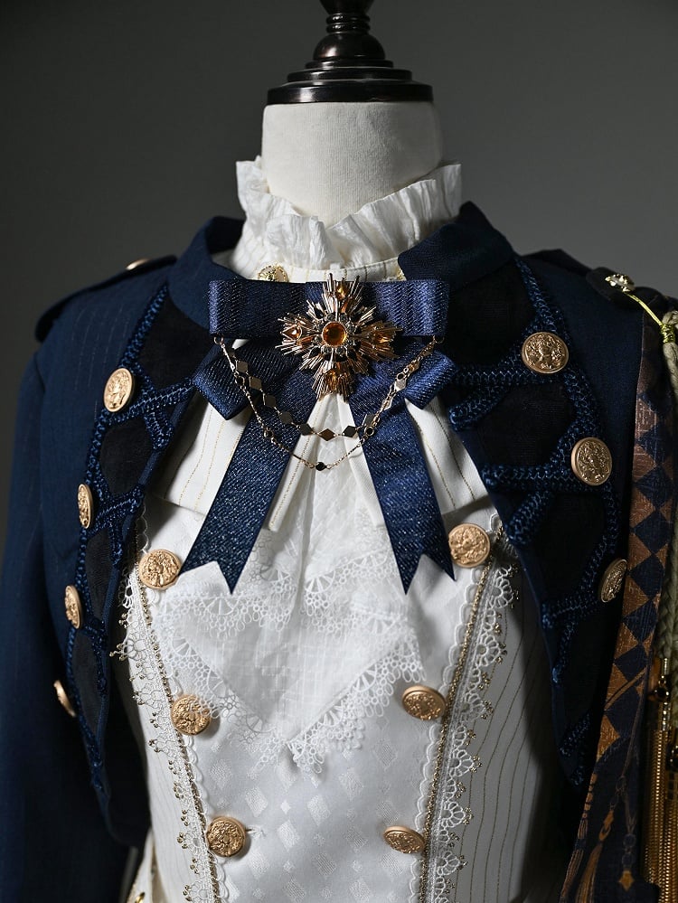 Blau-weißes Old School Lolita Fashion Kleid mit Schleife und Details, JSK-Set