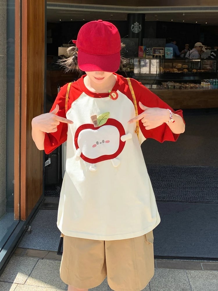 Rot-weißes Colorblock-Design T-Shirt Apple