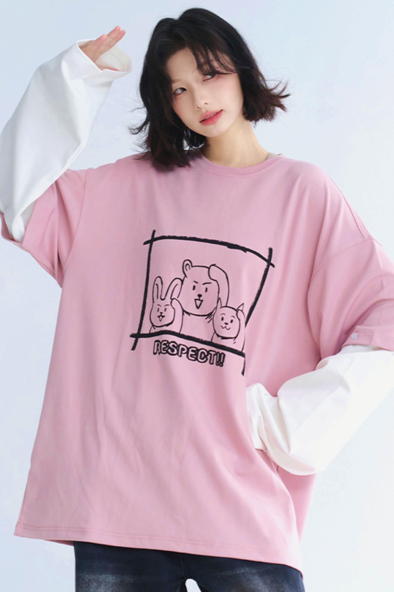 Lockeres T-Shirt mit Rundhalsausschnitt und mehrlagiger Passform