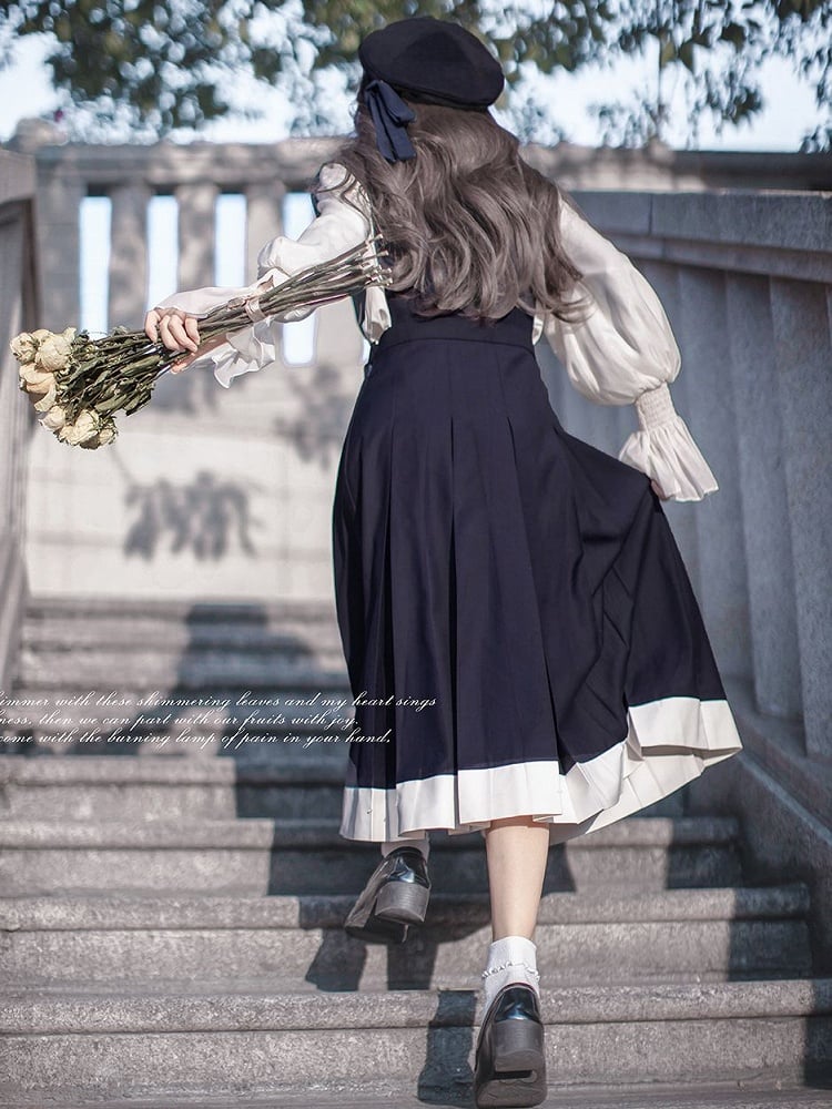 Schwarz-weißes Old School Lolita Fashion Kleid Bowknot Lolita JSK Set