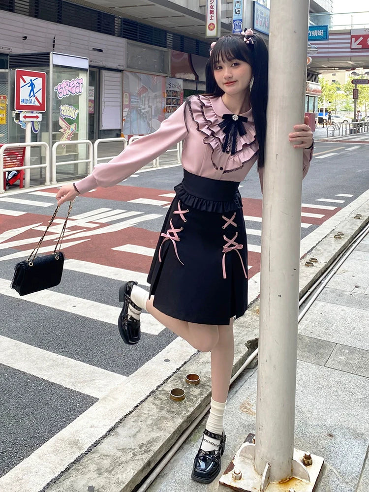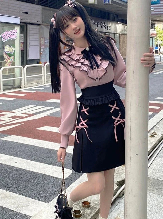 Rüschenrock Farbige Bluse + Schnürung Girly