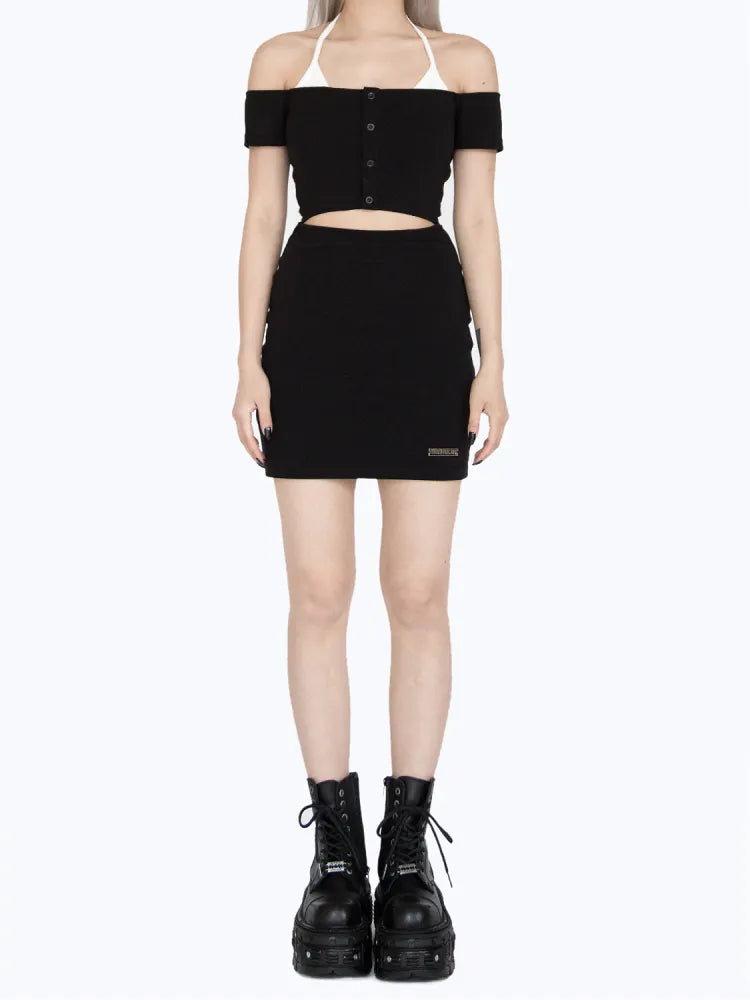 Ausverkauf – Größe S für Brustumfang 67 cm, schwarzes Neckholder-Kleid, Cutout-Taille