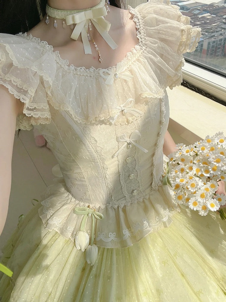Rosa und weißes Old School Lolita Fashion Kleid Bowknot Detais Lolita JSK Set