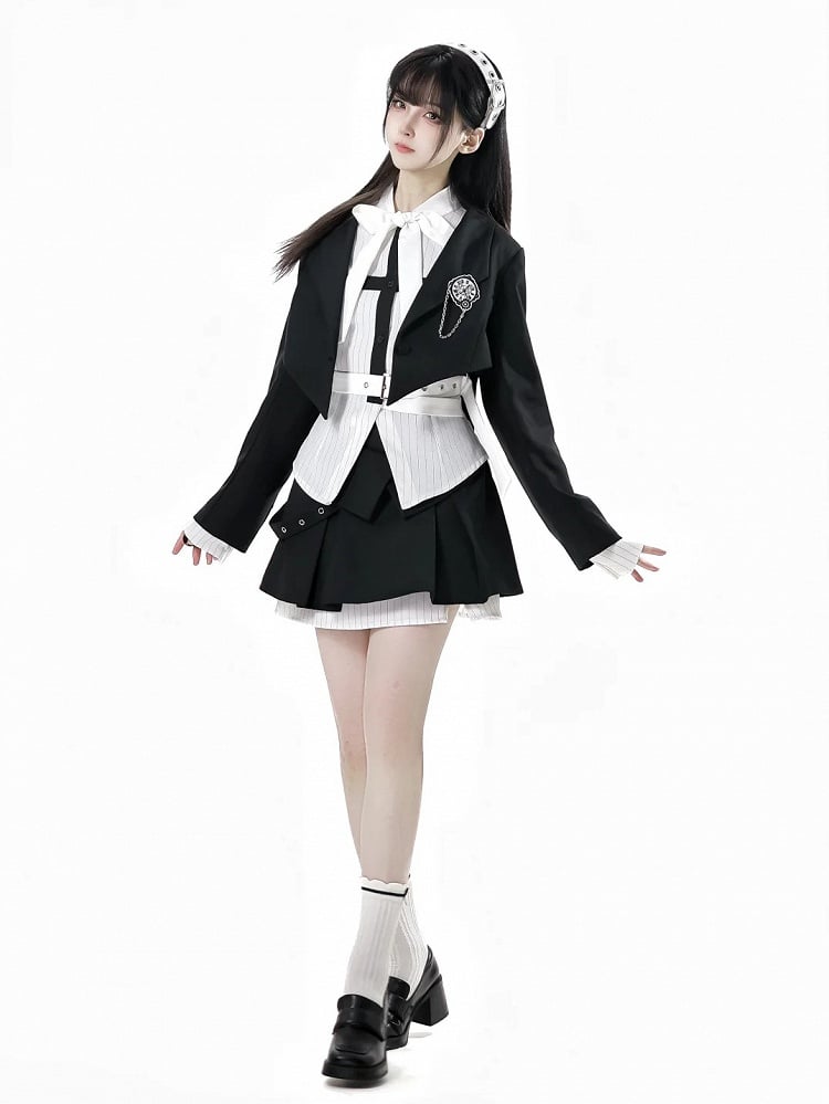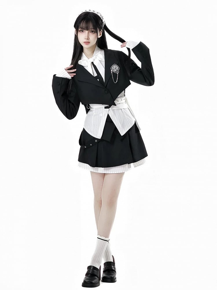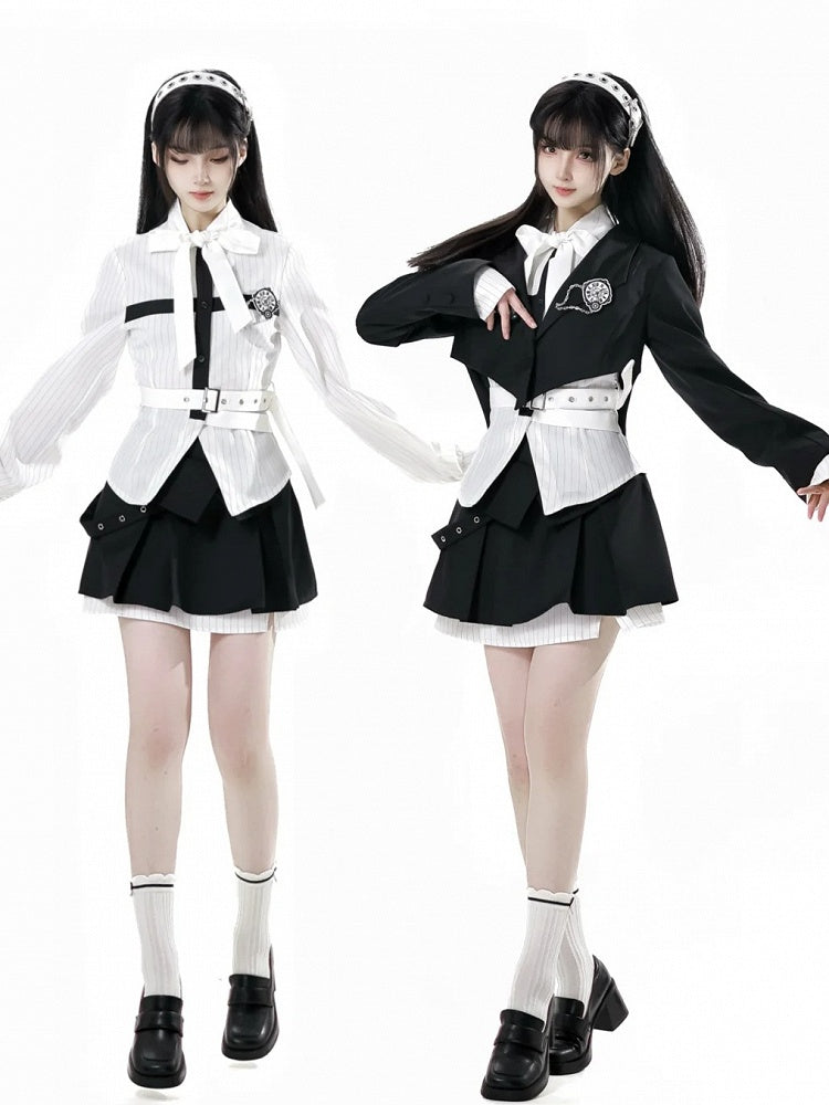 Schwarz-weißes Old School Lolita Fashion Kleid Bowknot Lolita JSK Set
