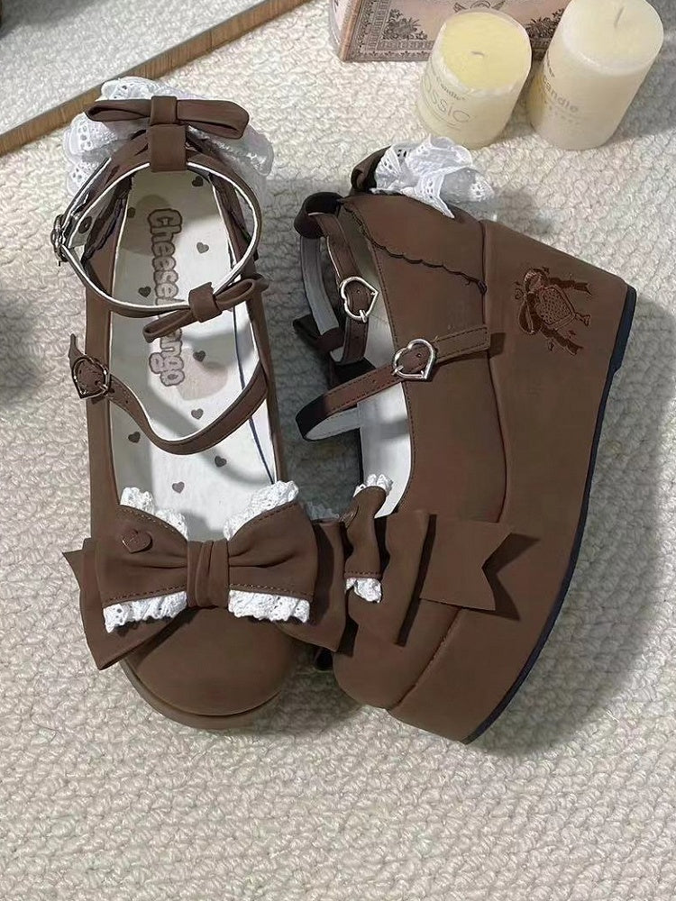 Lolita-Plateau-Mary-Jane-Schuhe – mehrstufige Spitze hinten, Schleifenverzierungen und mit Schleifen besticktes Fersendesign