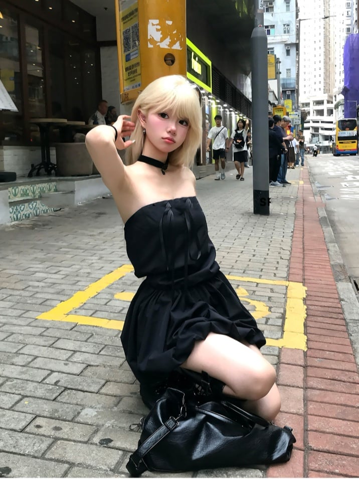 Rock Selbstbinden Strap Ausschnitt Glamouröses Trägerloses Kleid Schwarz Bubble