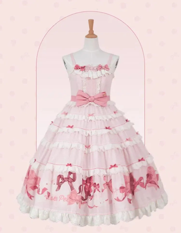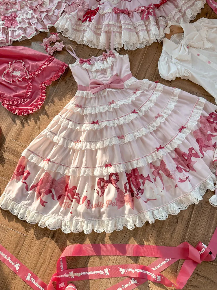Rosa und weißes Old School Lolita Fashion Kleid Bowknot Detais Lolita JSK Set