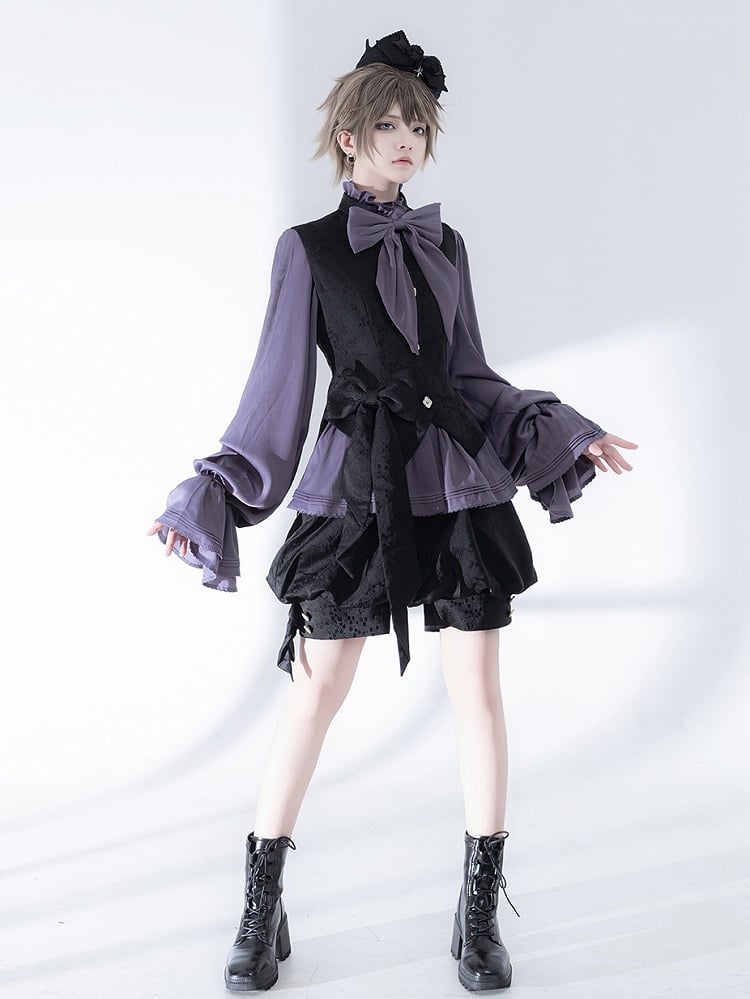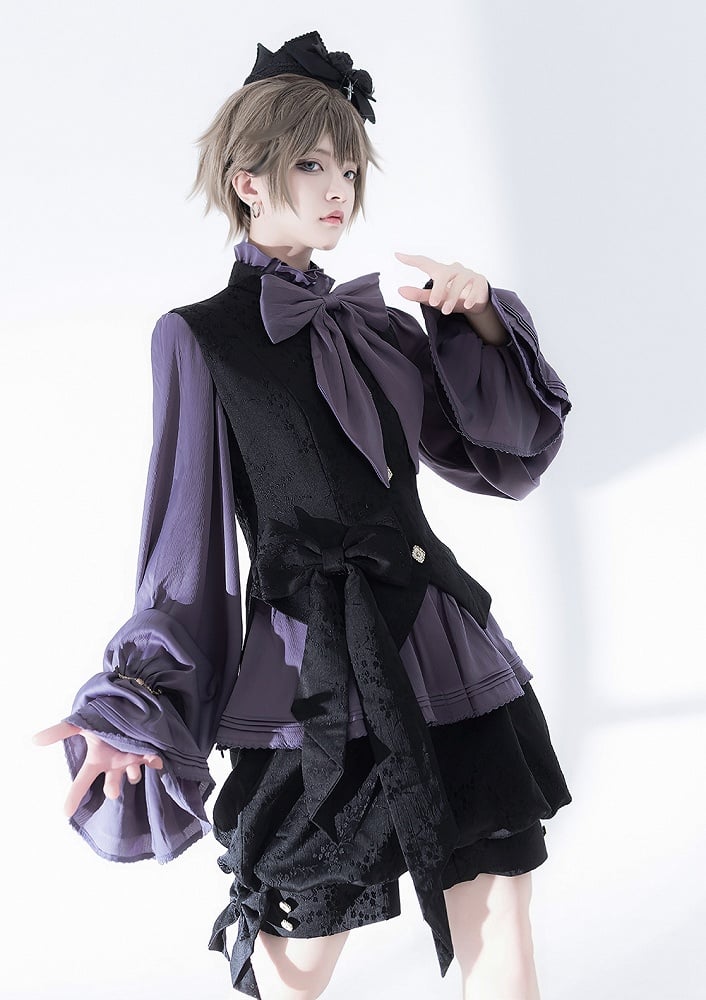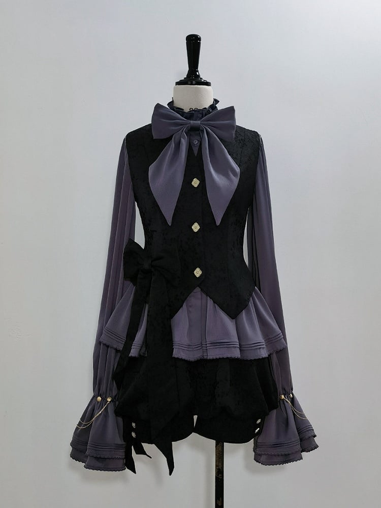 Schwarz-weißes Old School Lolita Fashion Kleid Bowknot Lolita JSK Set