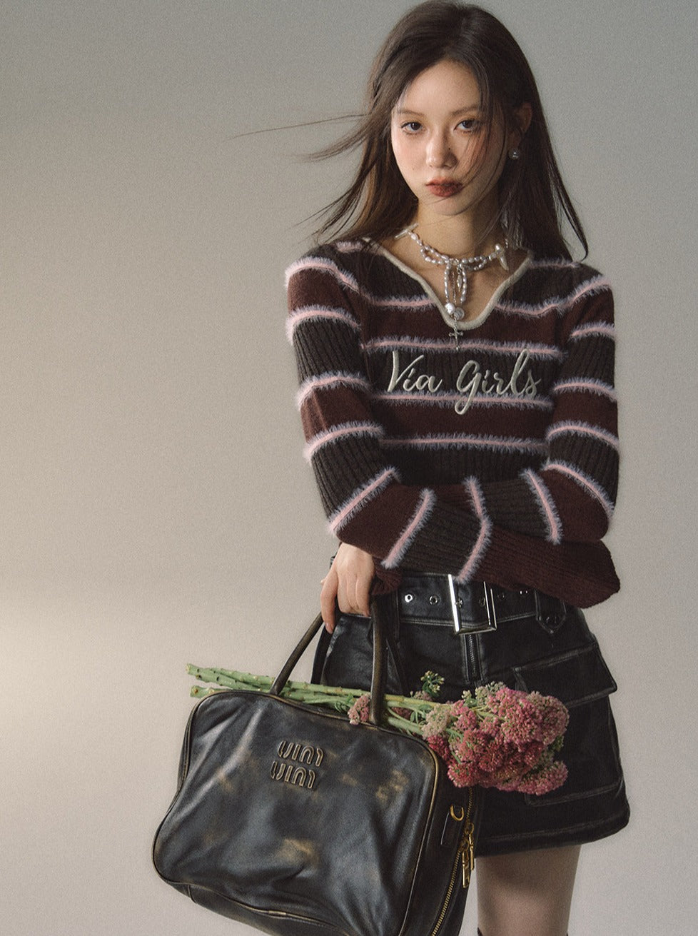 Slim Fit Strick mit Logobordüre