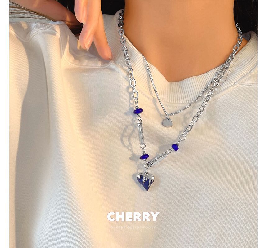 Stahlglasur Mehrlagige Halskette Anhänger Edelstahl Herz