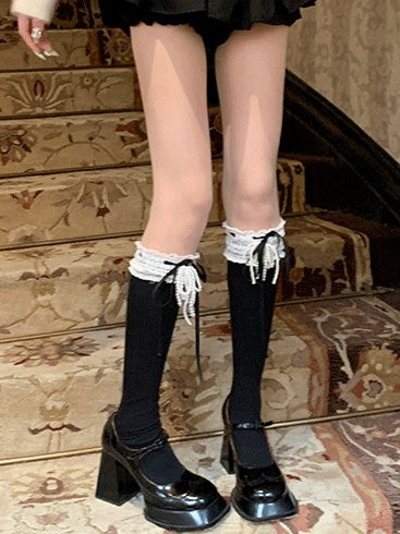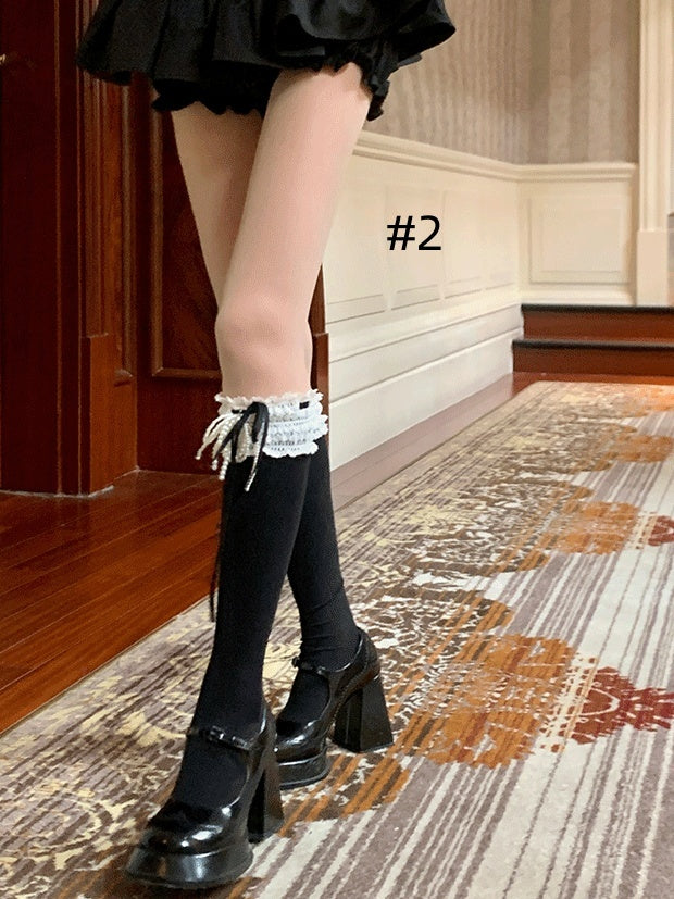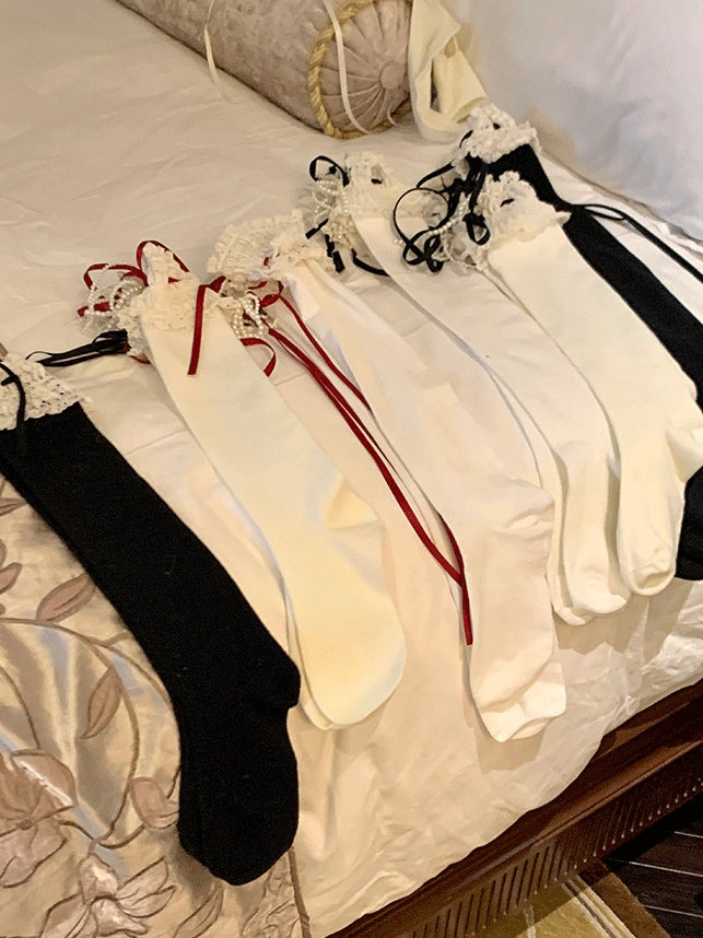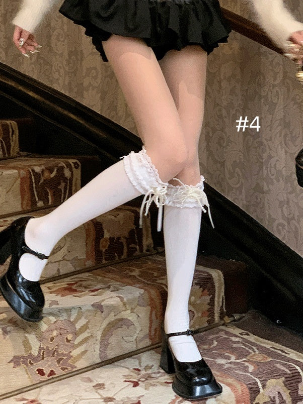 Diese süßen Socken mit Spitzenbesatz und Schleife verleihen jedem Outfit einen Hauch von Niedlichkeit. Aus zarter Spitze gefertigt und mit bezaubernden Schleifen verziert, verleihen sie Ihrem Look eine verspielte und feminine Note. Mit diesen hübschen Socken bleiben Ihre Füße bequem und stilvoll.