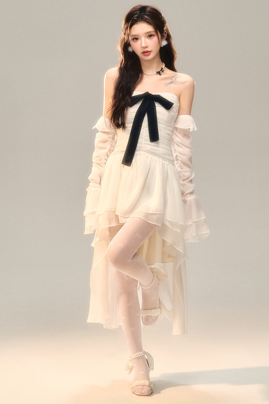 Schwarz-weißes Old School Lolita Fashion Kleid Bowknot Lolita JSK Set