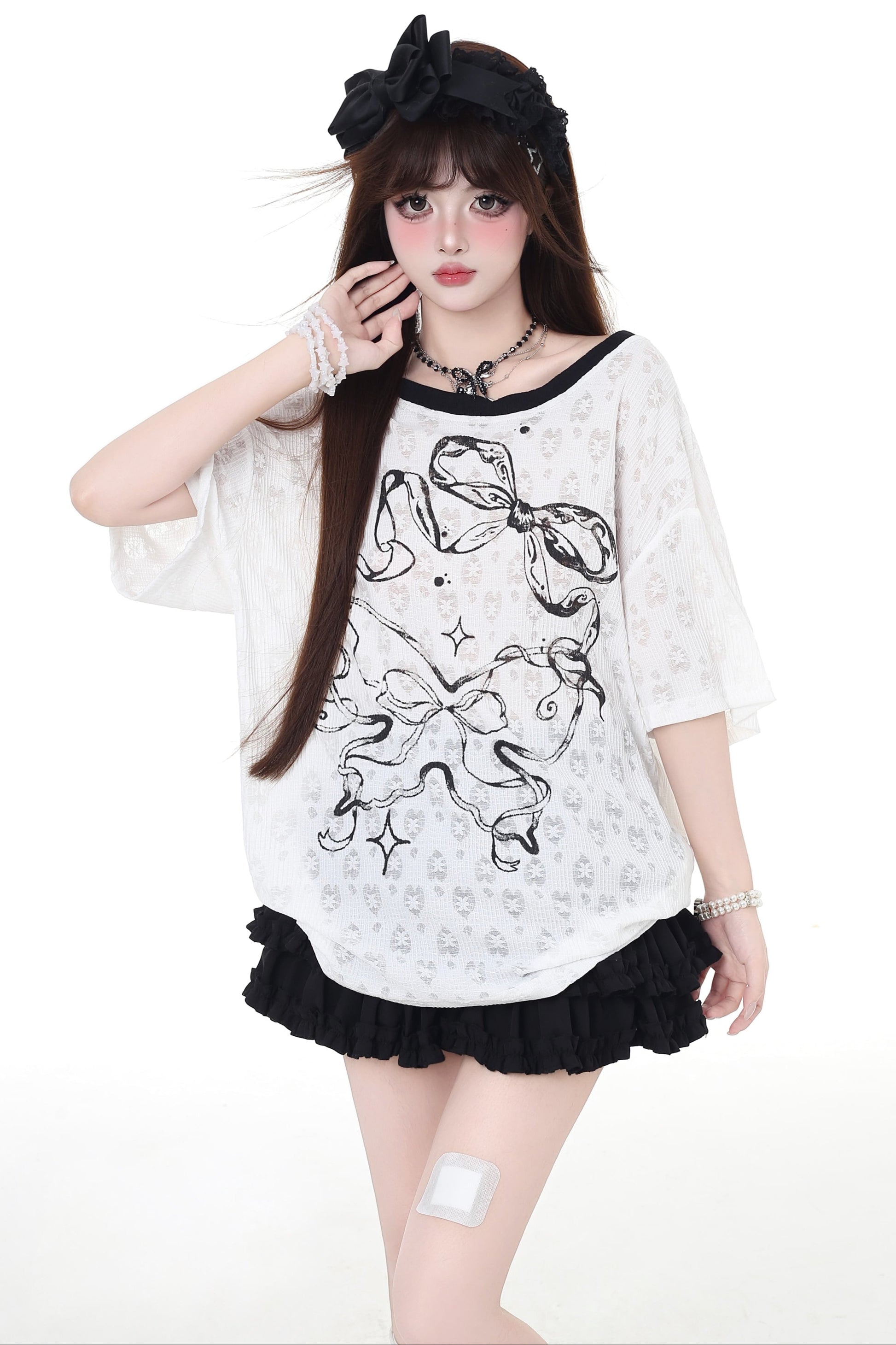 Schwarz-weißes Old School Lolita Fashion Kleid Bowknot Lolita JSK Set
