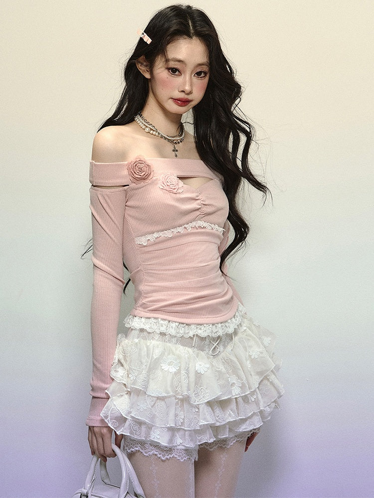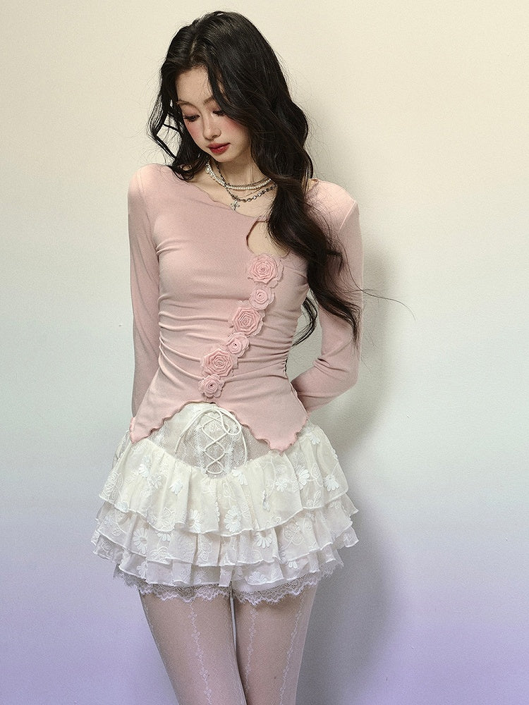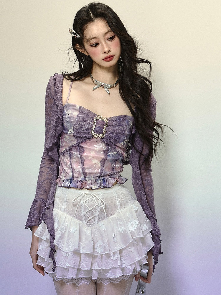 Dieser hübsche Rock besticht durch ein zartes Blumenmuster aus weißer Spitze, eine hohe Taille und gestufte Details für einen süßen und femininen Look. Die Schnürung verleiht diesem Minirock eine charmante Note. Perfekt für ein verspieltes und bezauberndes Outfit.