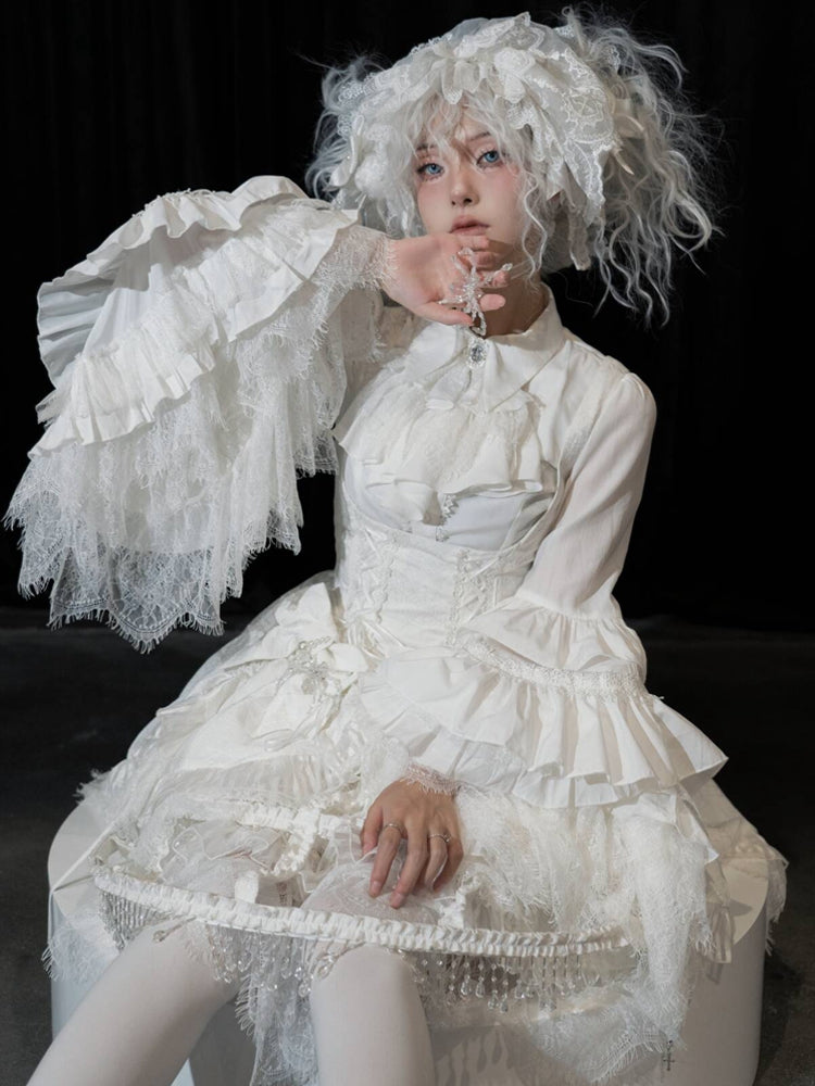 Dieses bezaubernde weiße Gothic Lolita-Shirt mit Glockenärmeln ist die perfekte Ergänzung für Ihre Garderobe. Mit seinen zarten Glockenärmeln und dem Kreuzanhänger verleiht es jedem Outfit einen Hauch von Niedlichkeit. Der spitze Kragen verleiht einen Hauch von Eleganz und macht es zu einem vielseitigen Kleidungsstück für jeden Anlass.