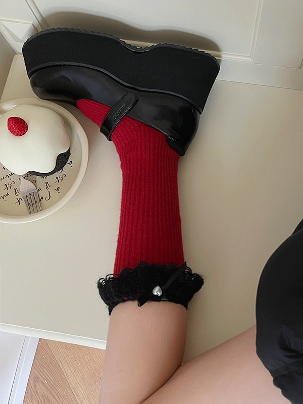 Verleihen Sie Ihrem Outfit mit unseren weißen Lolita-Wadensocken mit Schleife und Spitzenbündchen einen Hauch von Niedlichkeit. Die zarte Spitze und die Schleifendetails lassen Sie hervorstechen und halten Ihre Waden warm und bequem. Perfekt für jeden Anlass, sind diese Socken ein Muss für jeden Kawaii-Liebhaber.
