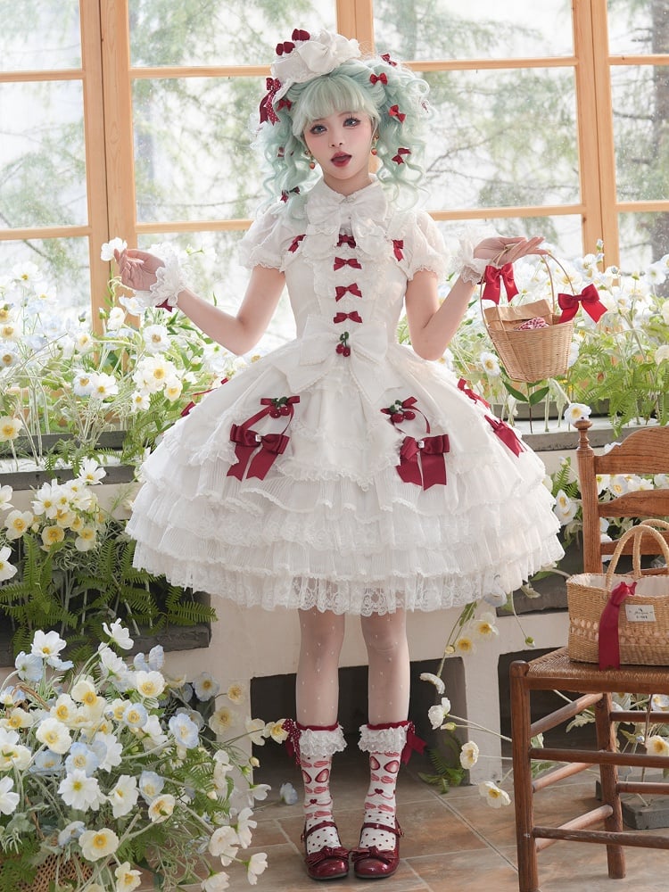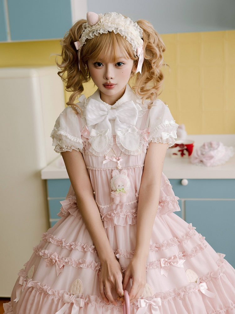 Rosa und weißes Old School Lolita Fashion Kleid Bowknot Detais Lolita JSK Set