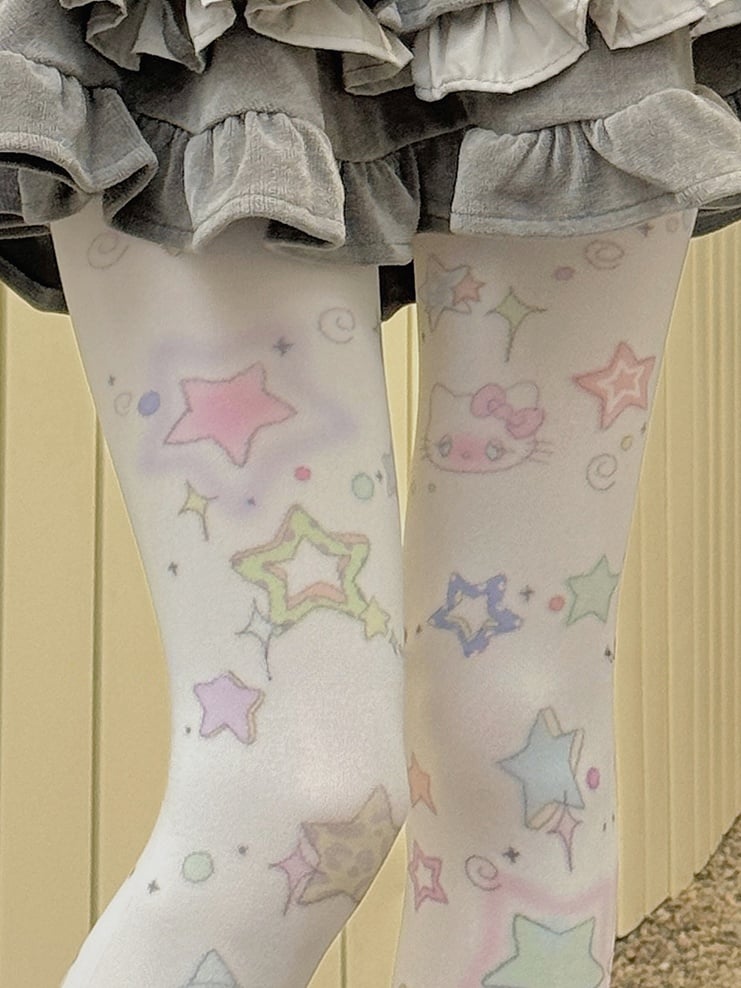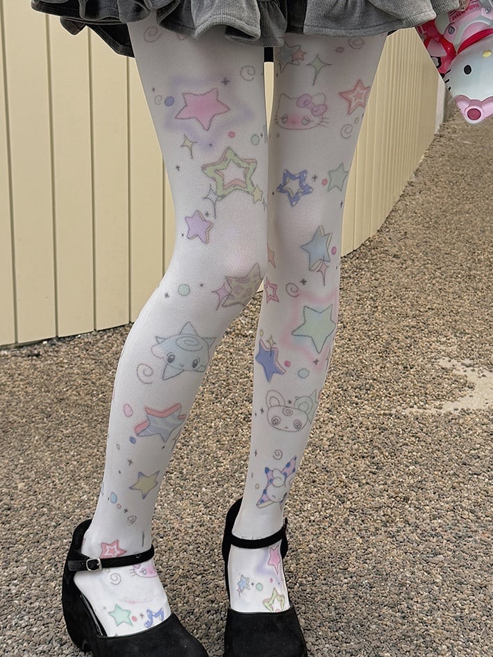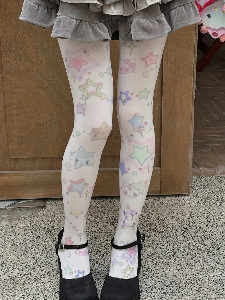 Bleiben Sie süß und gemütlich mit unseren weißen Strumpfhosen mit süßem Sternenmuster. Diese Strumpfhose aus weichem und bequemem Material präsentiert sich mit einem hübschen Sternenmuster. Perfekt, um jedem Outfit einen Hauch von Süße zu verleihen.