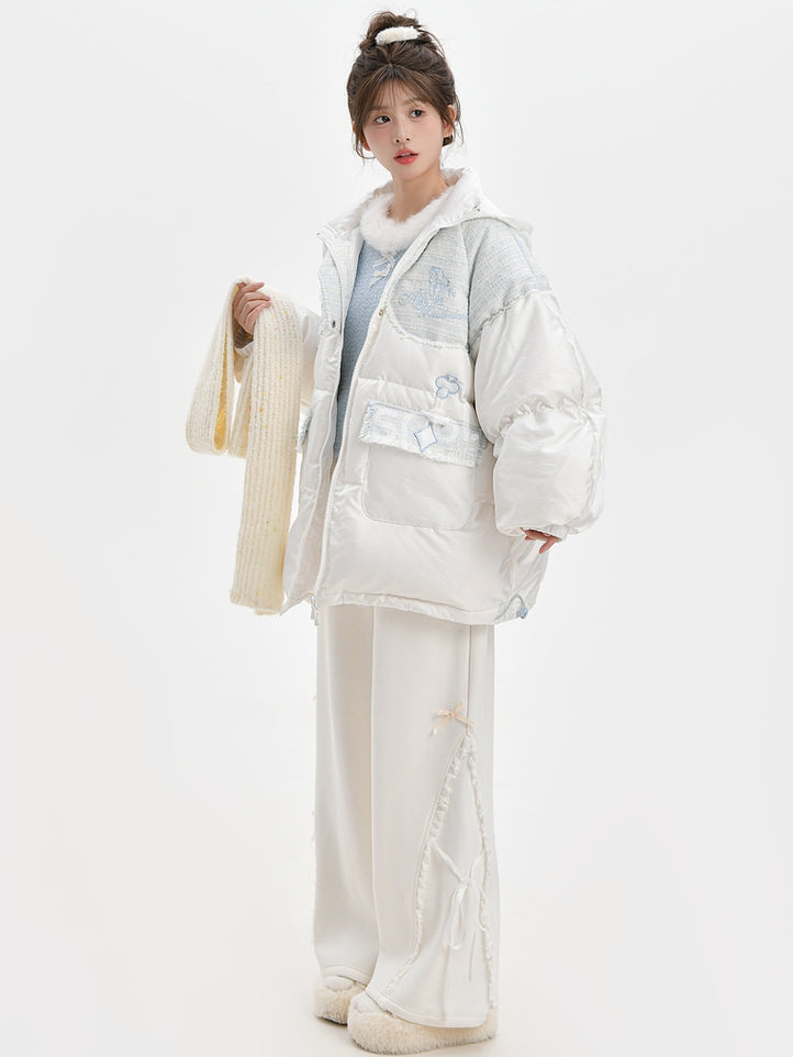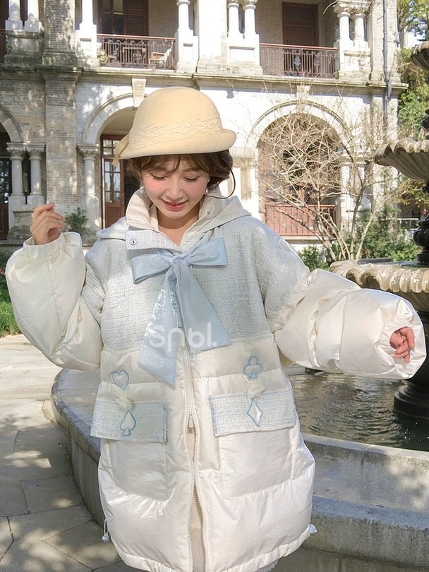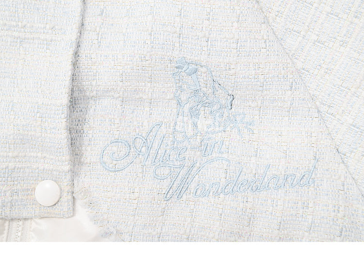 不思議の国のアリス アリス ツイード パッチワーク ホワイト フード付き ダウンジャケット