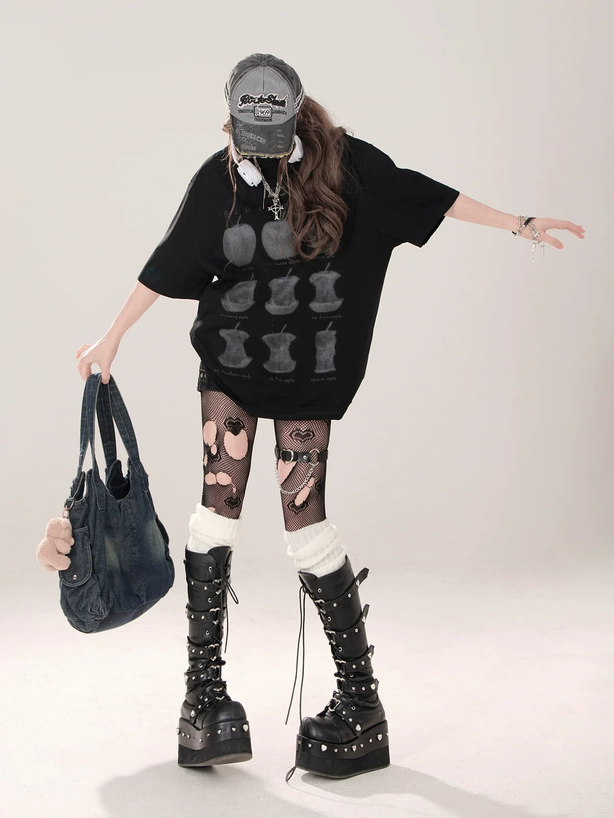 アメリカンテーマのゆったりTシャツで、リンゴへの愛を表現しましょう。キュートなリンゴプリントが特徴のこのシャツは、どんなカジュアルなシーンにもぴったりです。ワードローブにこのユニークなアイテムを加えれば、快適でスタイリッシュな着こなしが楽しめます。