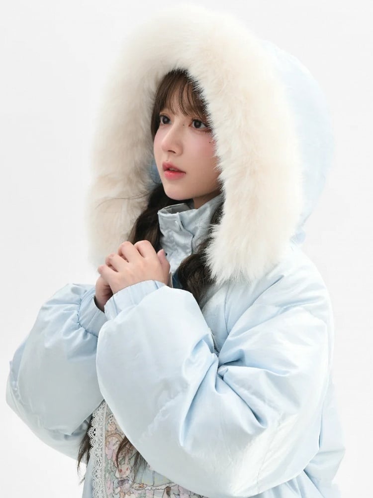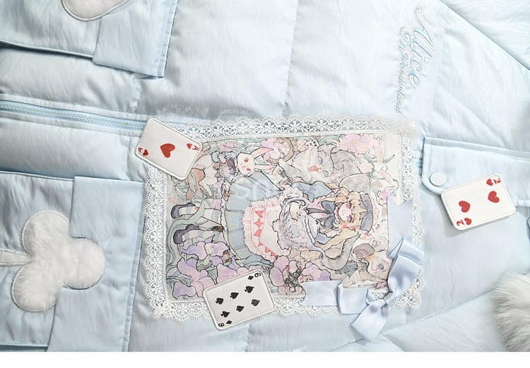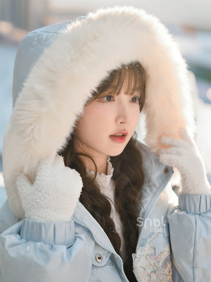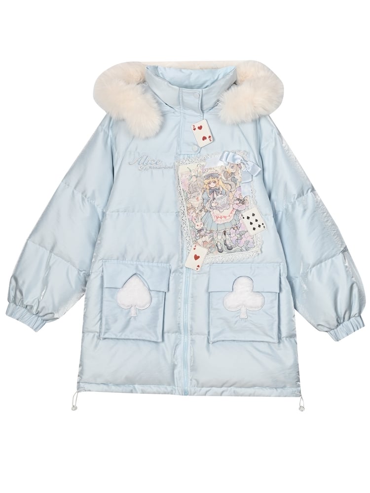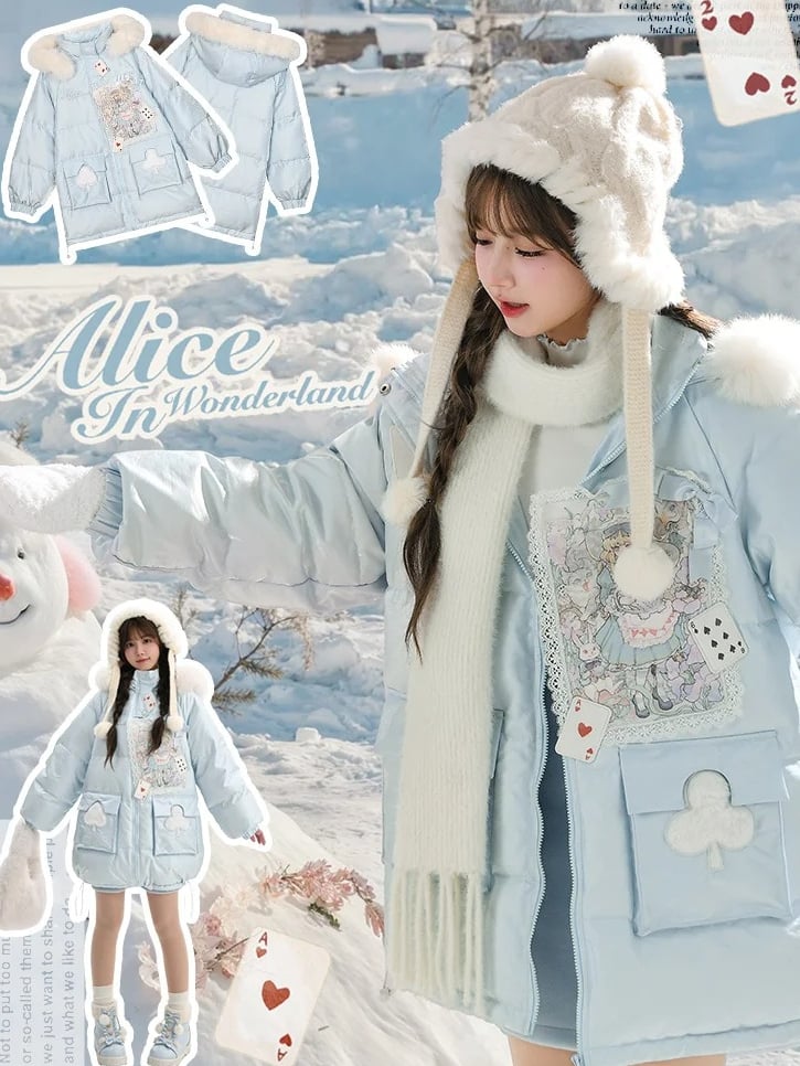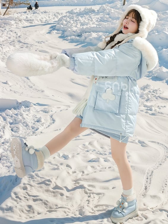 アップリケブルーのフード付きダウンコートで、暖かくキュートな着心地をキープ。ユニークなアップリケデザインと温かみのあるフード付きシルエットが特徴のこのコートは、冬の間ずっとスタイリッシュで快適な着心地をキープします。