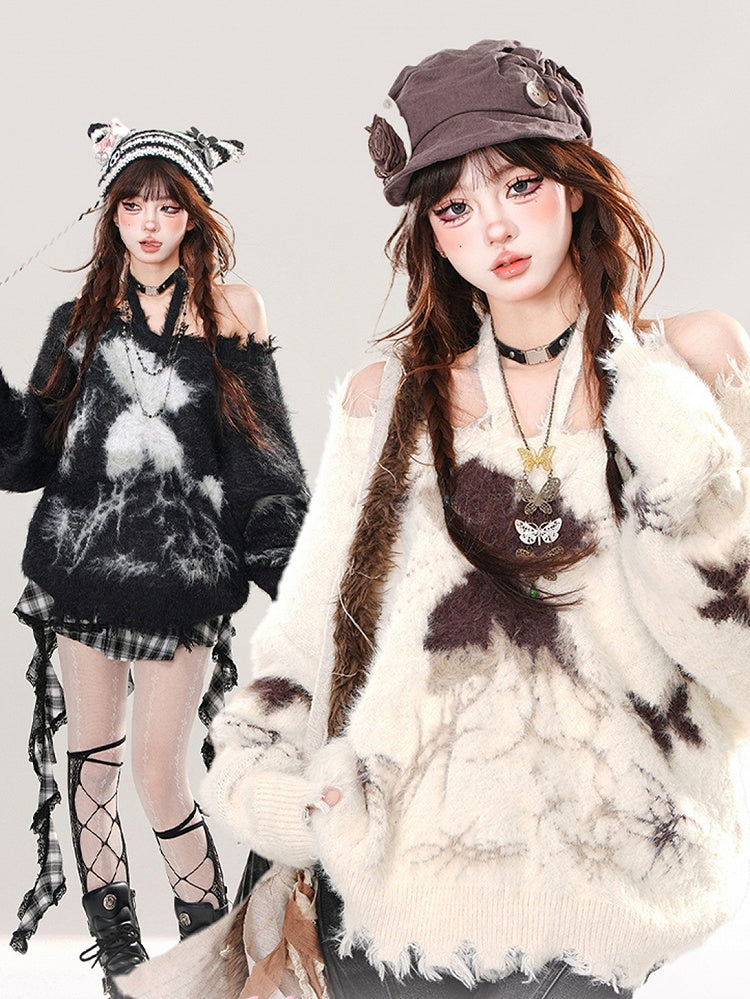 アプリコット/ブラック バタフライ ホルターネック モヘア ルーズセーター
