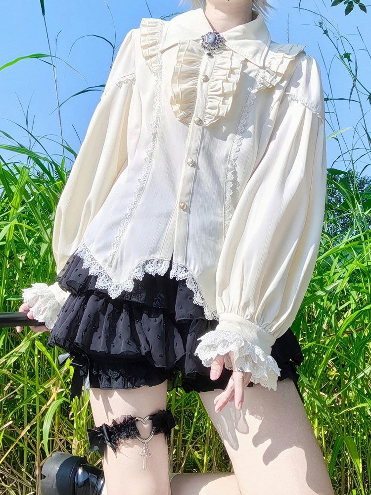 アプリコットのエレガントなポインテッドカラーの長袖シャツ