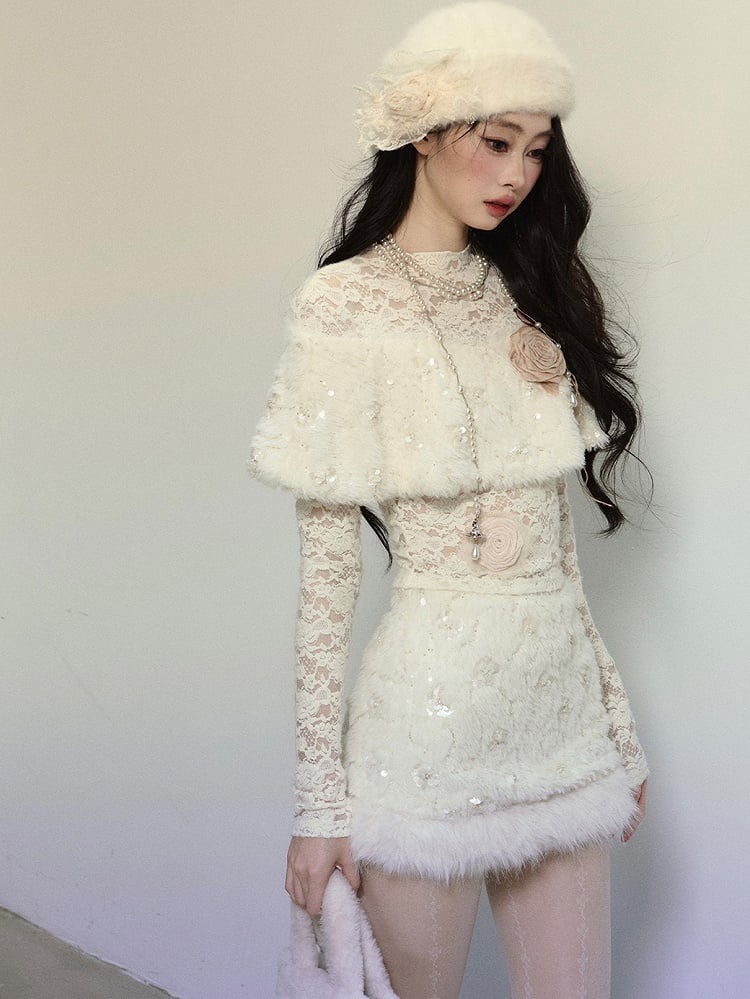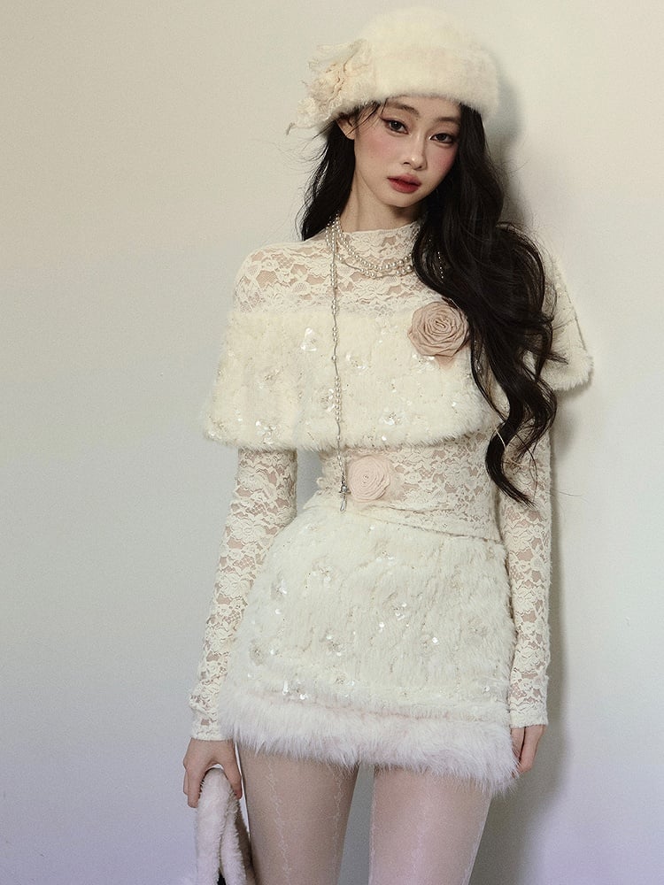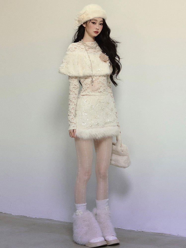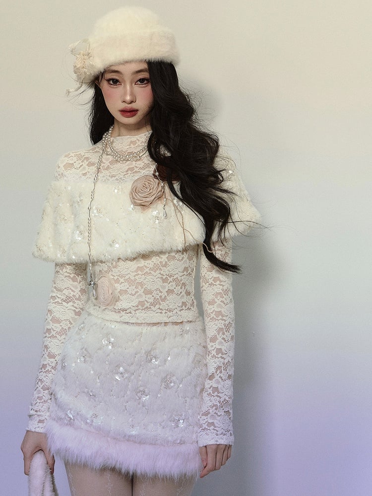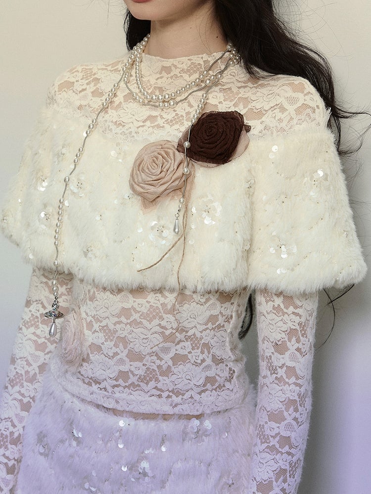 アプリコットフラワーをあしらったプラッシュショール ロングスリーブ レーストップスで、ワードローブに甘さをプラス。繊細な花柄のディテールとプラッシュショールデザインが、魅力的で快適な着心地を実現。どんなシーンにもぴったりです。