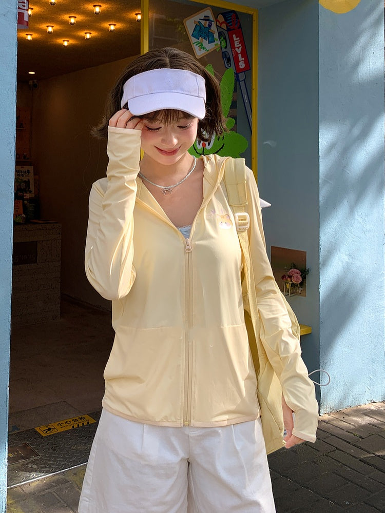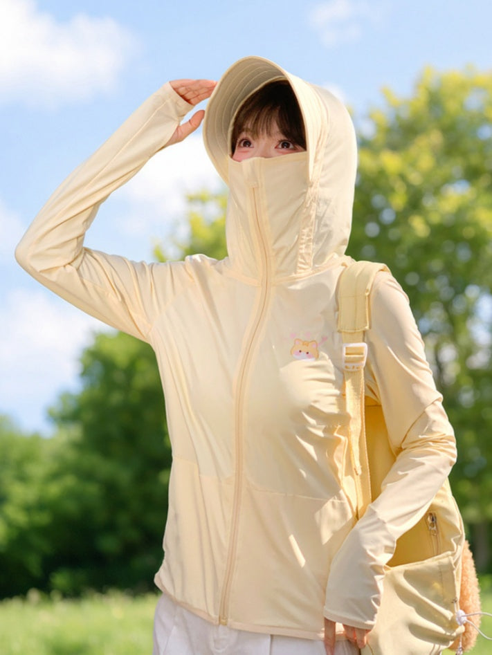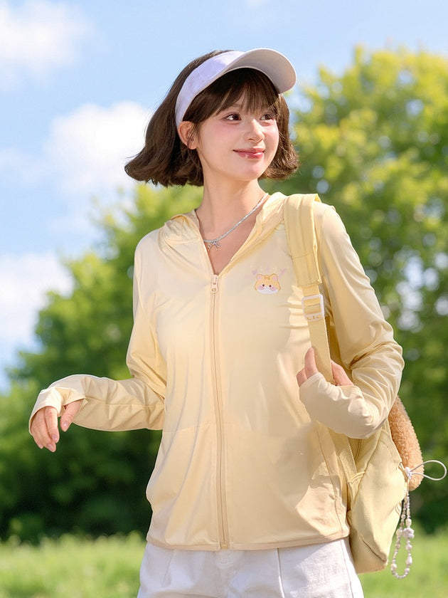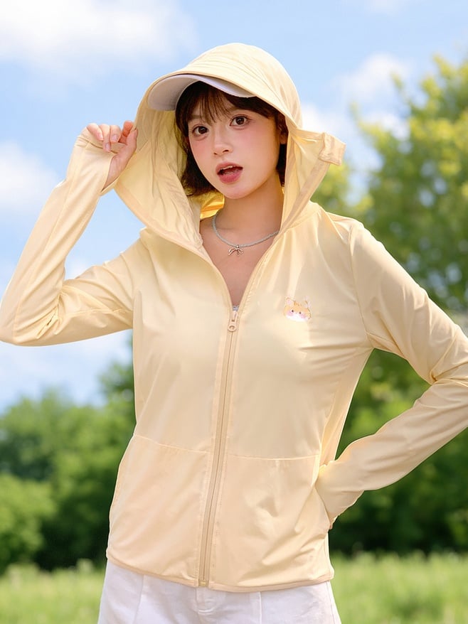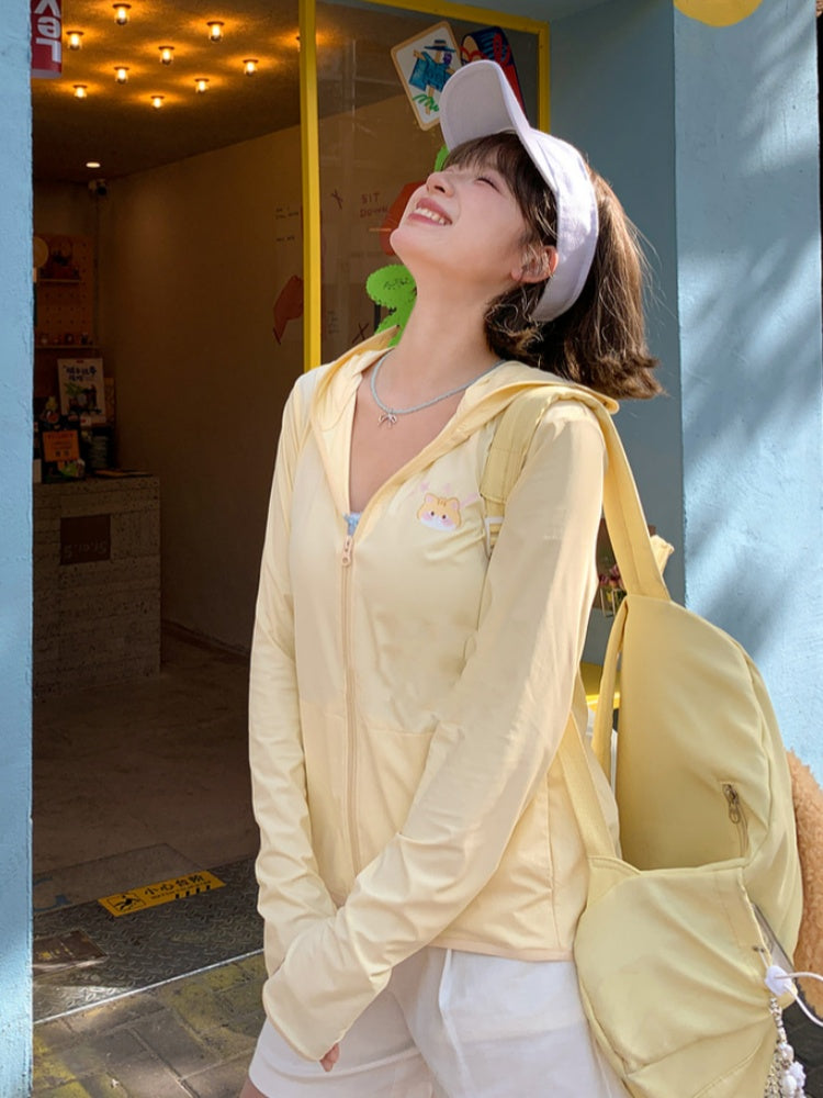 アプリコットキティプリントのゆったりサンプロテクションジャケット