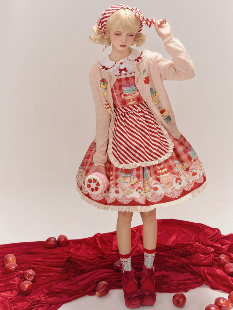 ピンクと白のオールドスクールロリータファッションドレス、蝶結びディテール、ロリータJSKセット