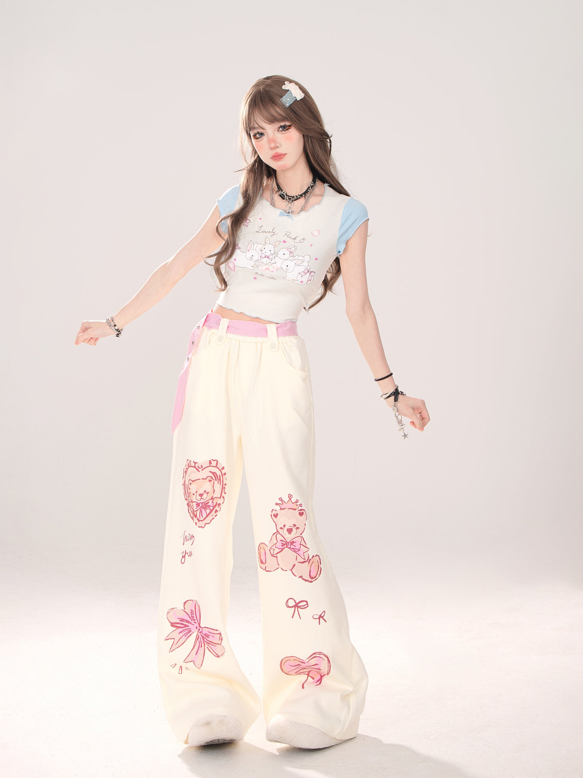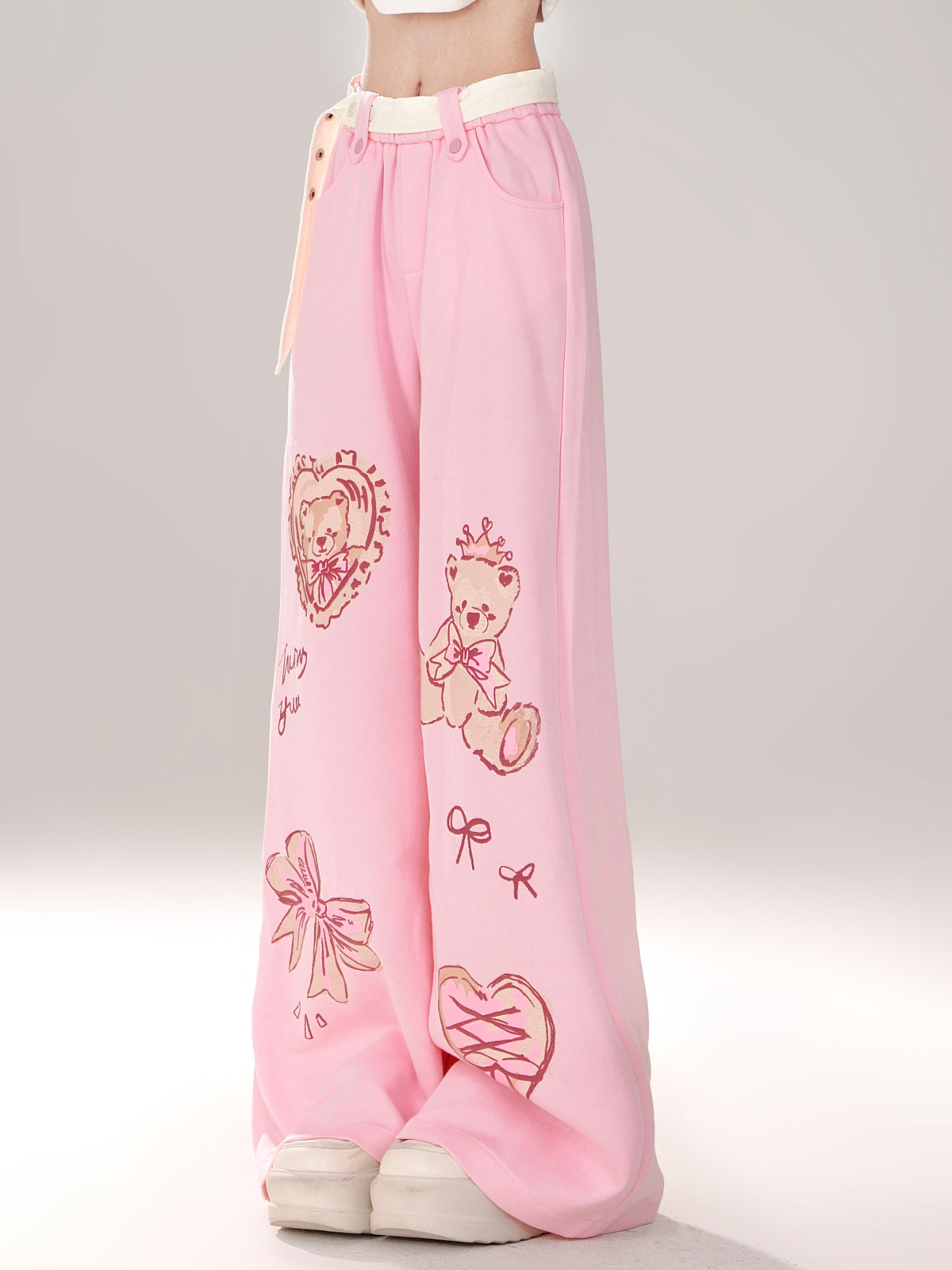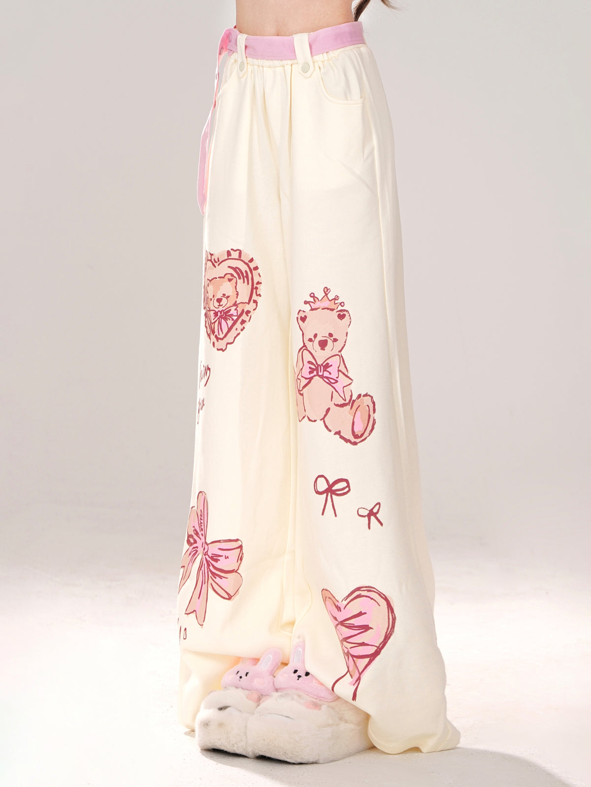 愛らしい「ルーズベアポップ」ワイドイラストパンツは、どんな日にもぴったり!上質な素材とキュートなデザインで、着心地もスタイリッシュさも兼ね備えています。ワイドレッグカットと遊び心のあるプリントで、お子様はどんなシーンにも喜んで着こなせるでしょう。