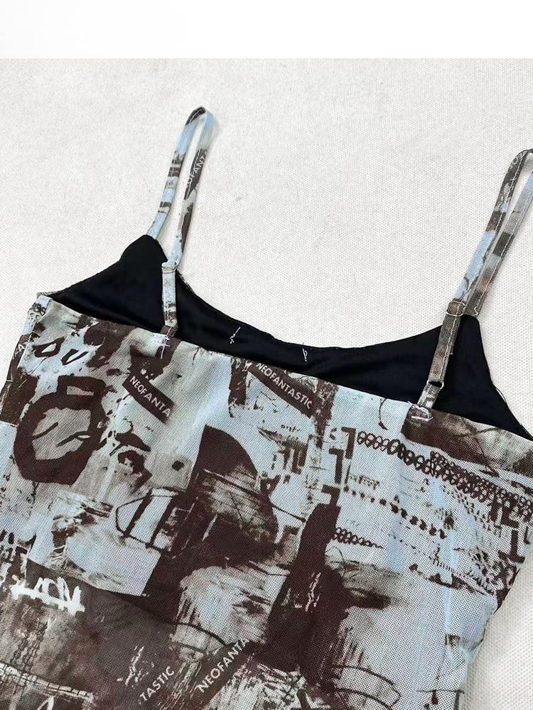 ● カスケードフリルアクセント / レースアップディテール / 細いショルダーストラップ / タイダイ