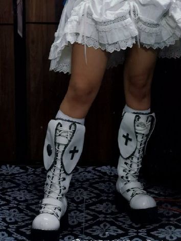 Bad BunnyのレーストリムとバニーイヤーがアクセントのホワイトPUゴシックプラットフォームブーツで、キュートで遊び心のあるスタイルを完成させましょう。スタイリッシュなレーストリムとバニーイヤーのデザインが魅力を添え、プラットフォームソールが高さと履き心地を両立。自分らしいスタイルを追求する方にぴったりです。