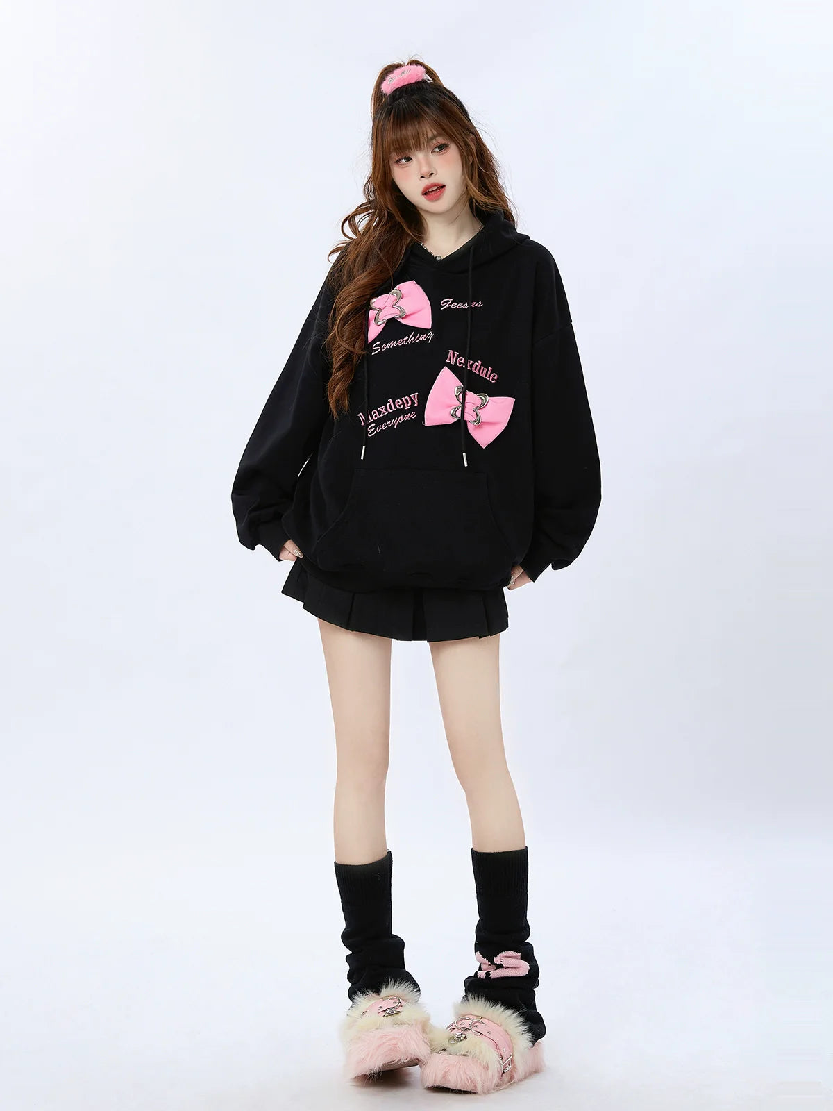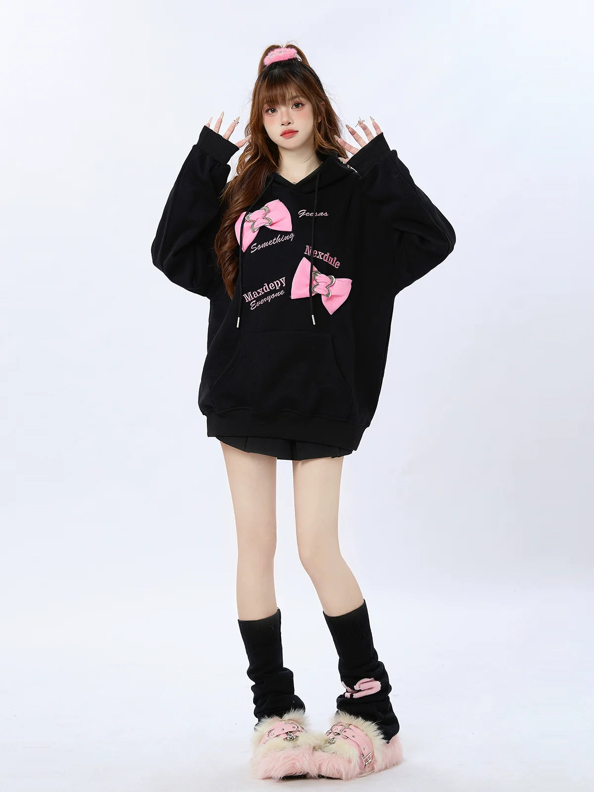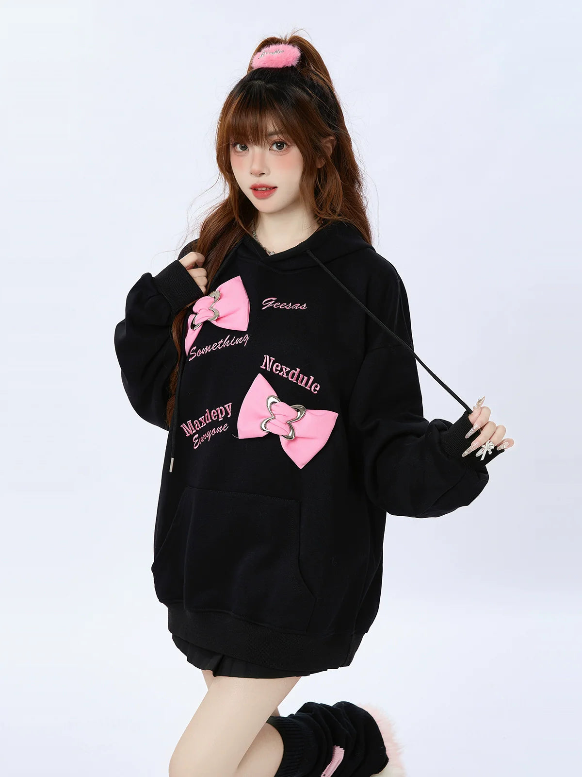 バッグのオーバーサイズリボンルーズトップフードで、暖かくスタイリッシュに。オーバーサイズのフィット感とフードが暖かく、キュートなリボンディテールがキュートなアクセントを添えます。カジュアルで快適な着こなしにぴったりです。