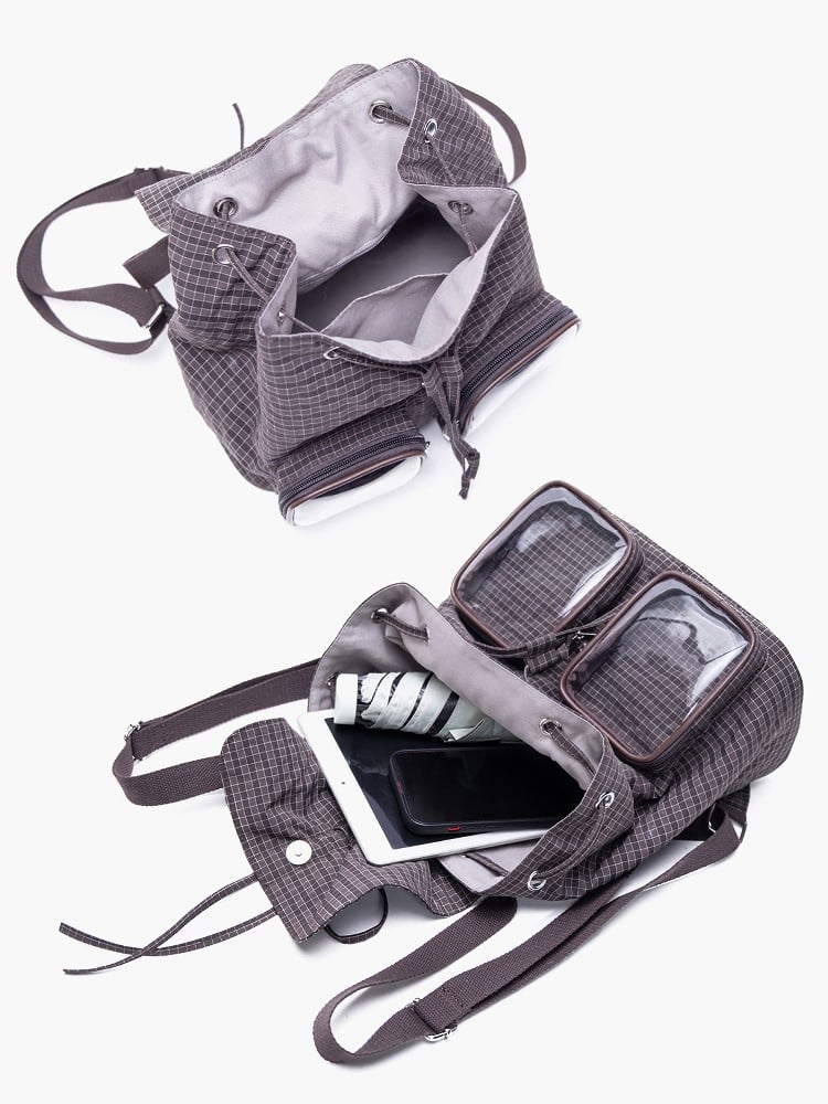 Bag With Charming Bow Drawstring Chic Brown Mini Double-Layer Ita