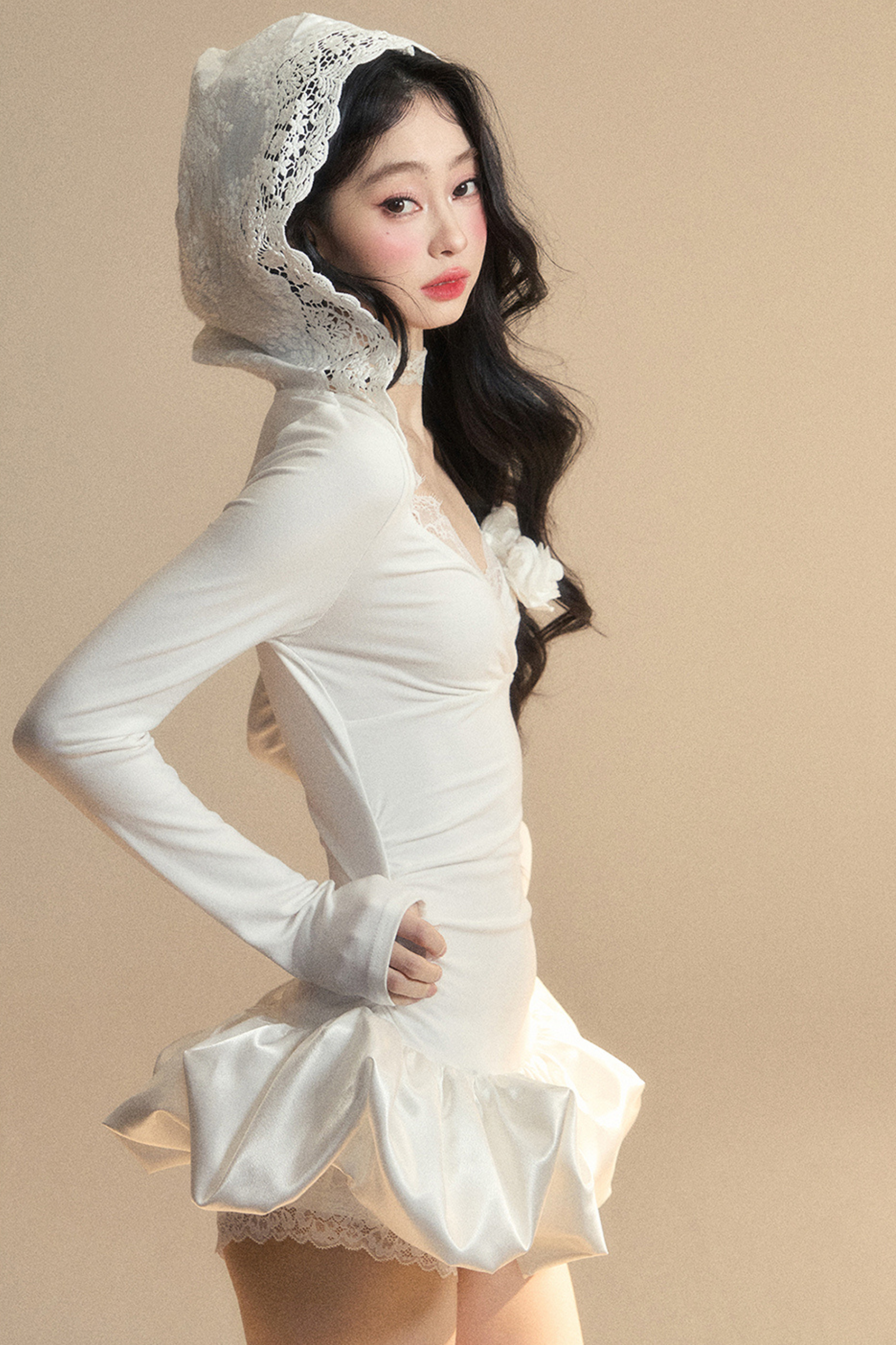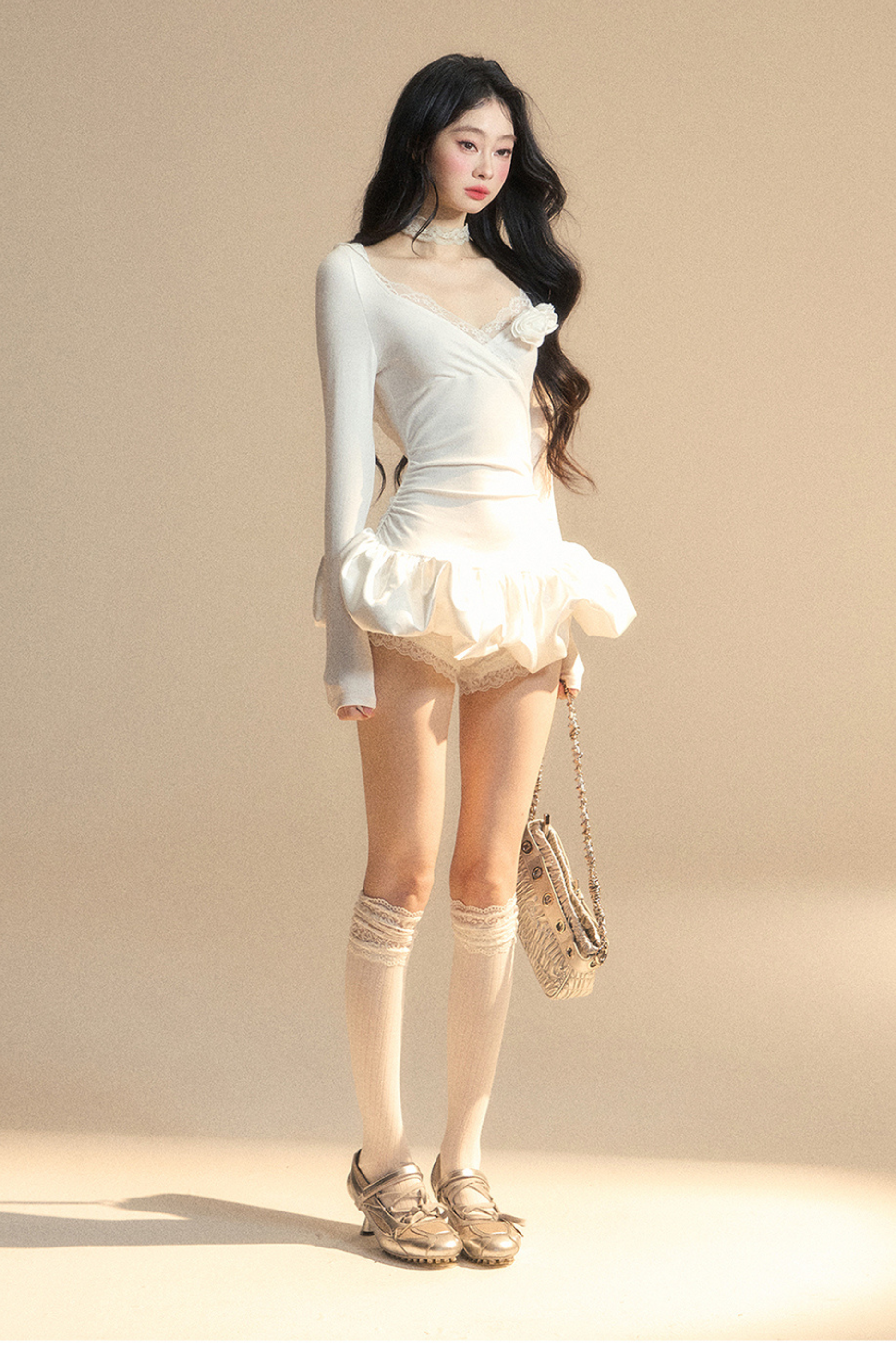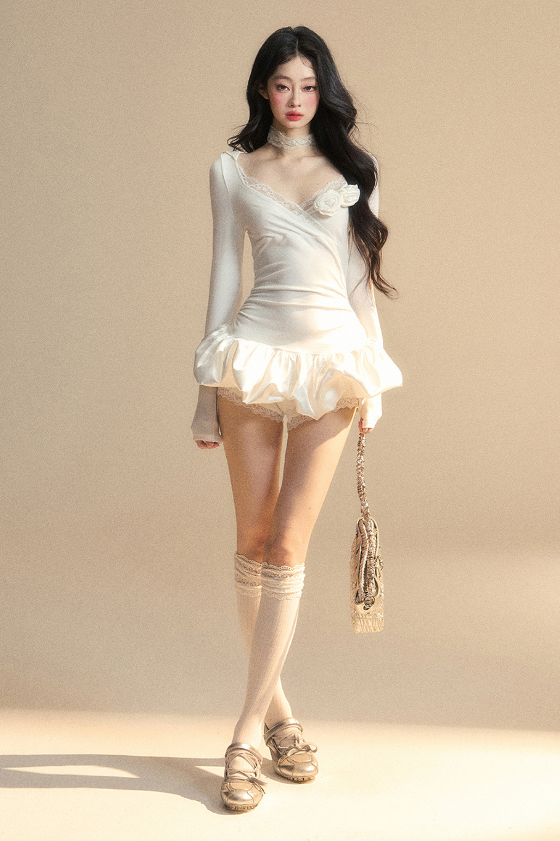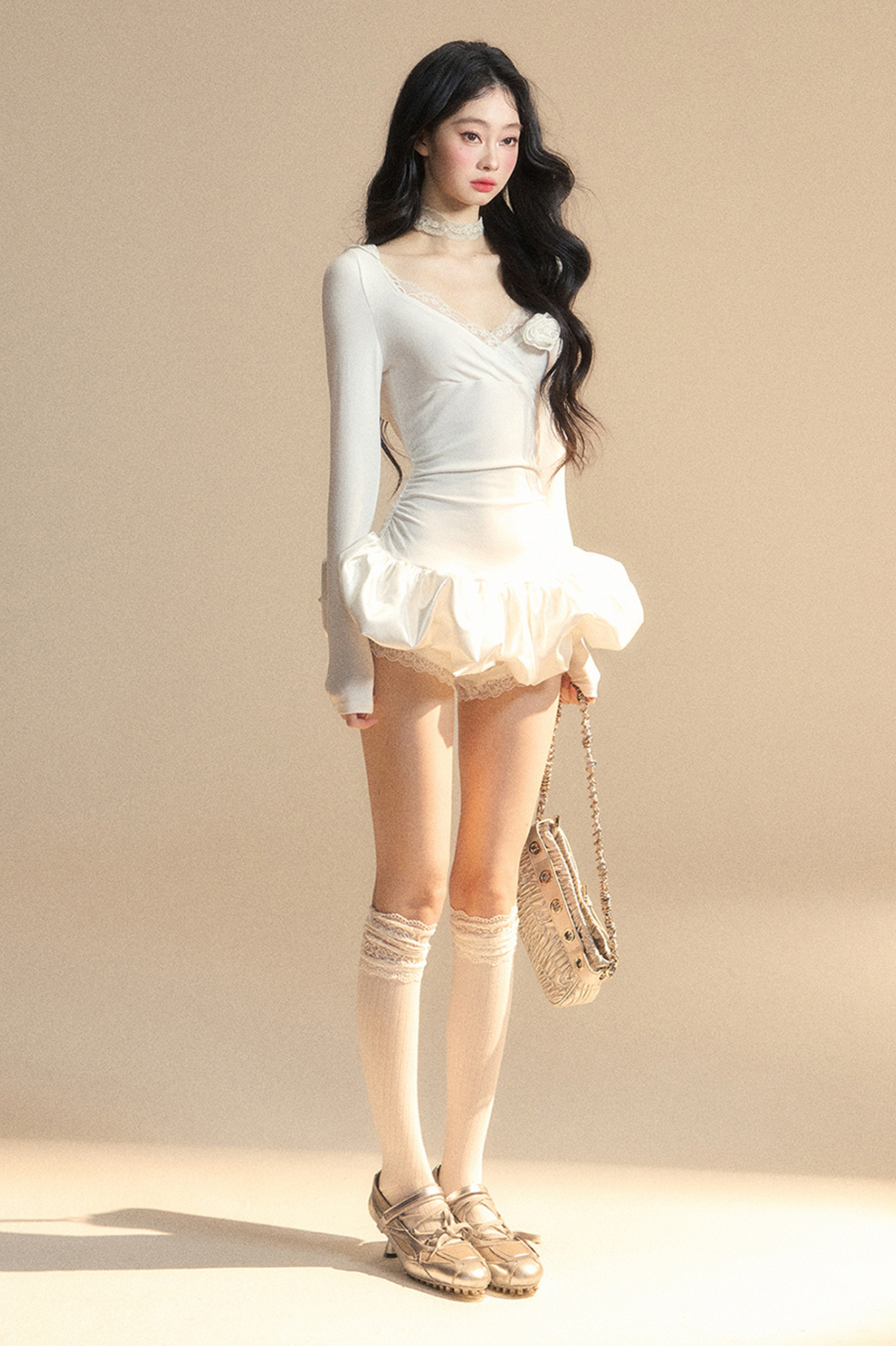 青と白のオールドスクールロリータファッションドレス 蝶結びディテール JSK セット