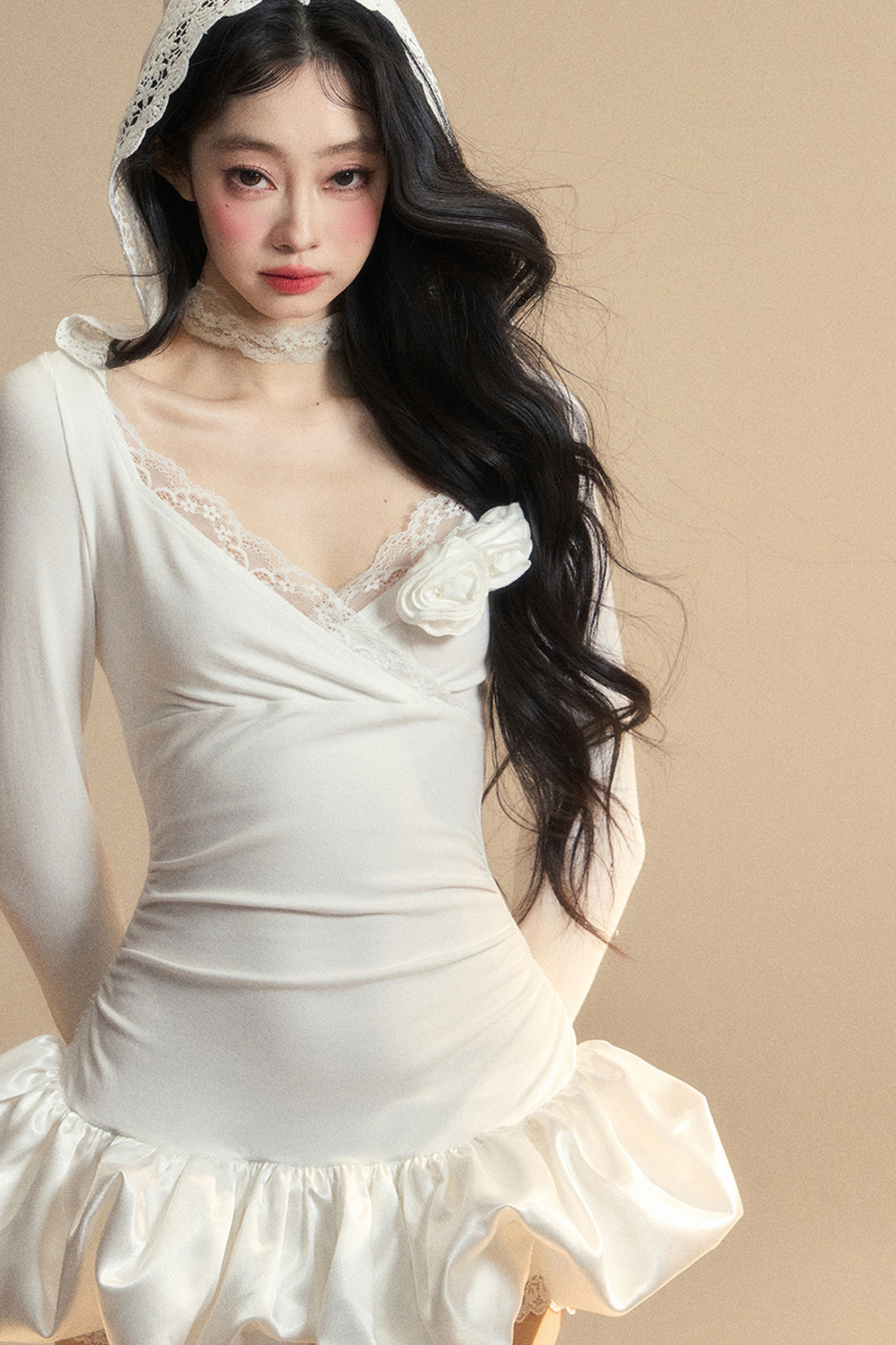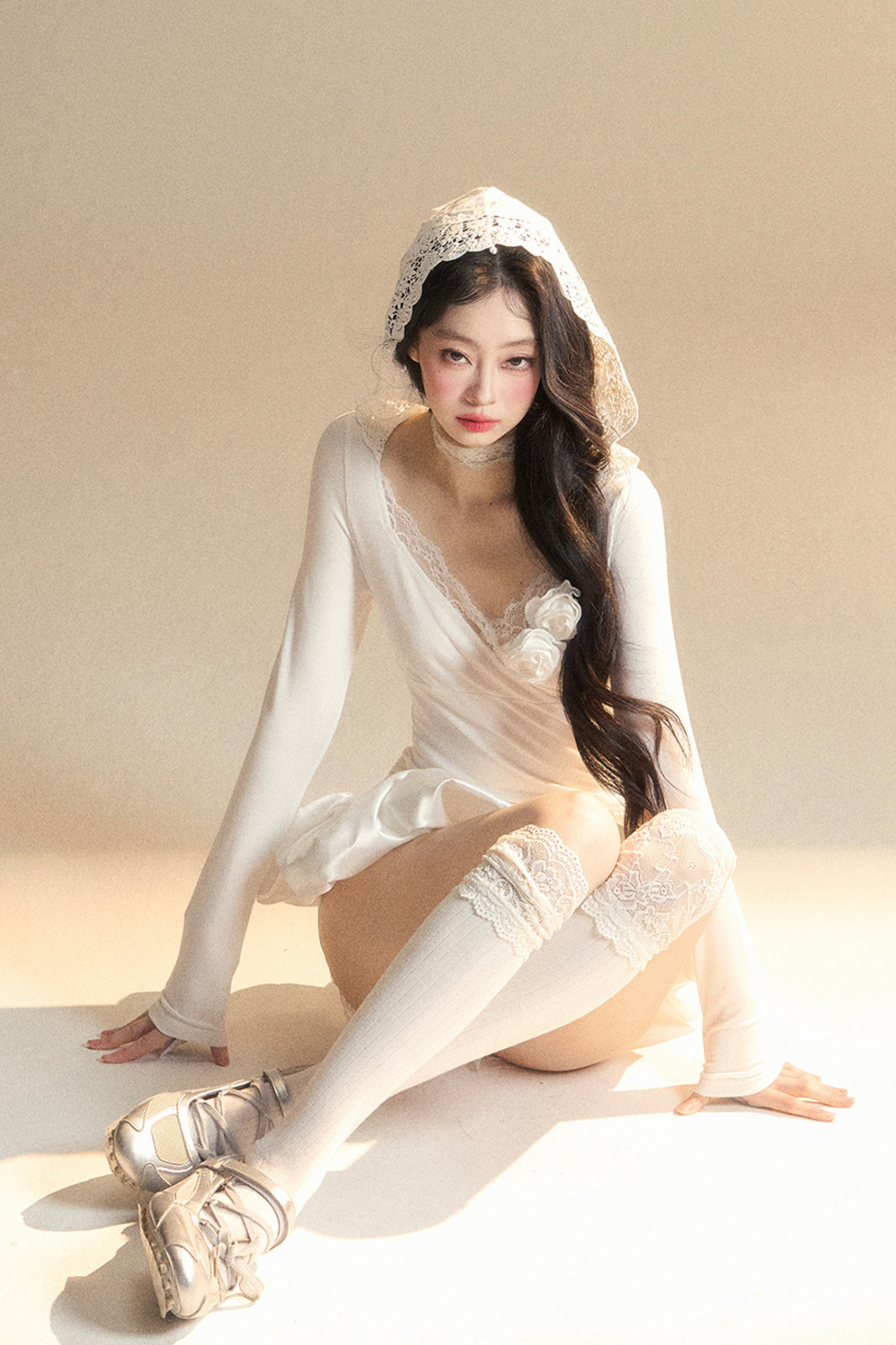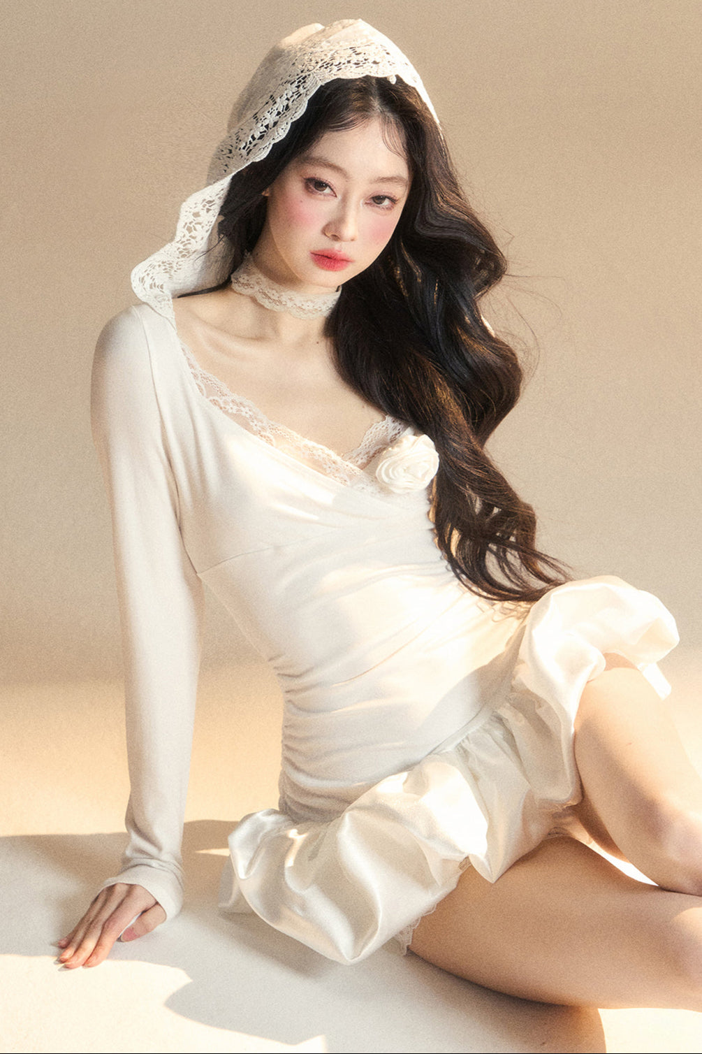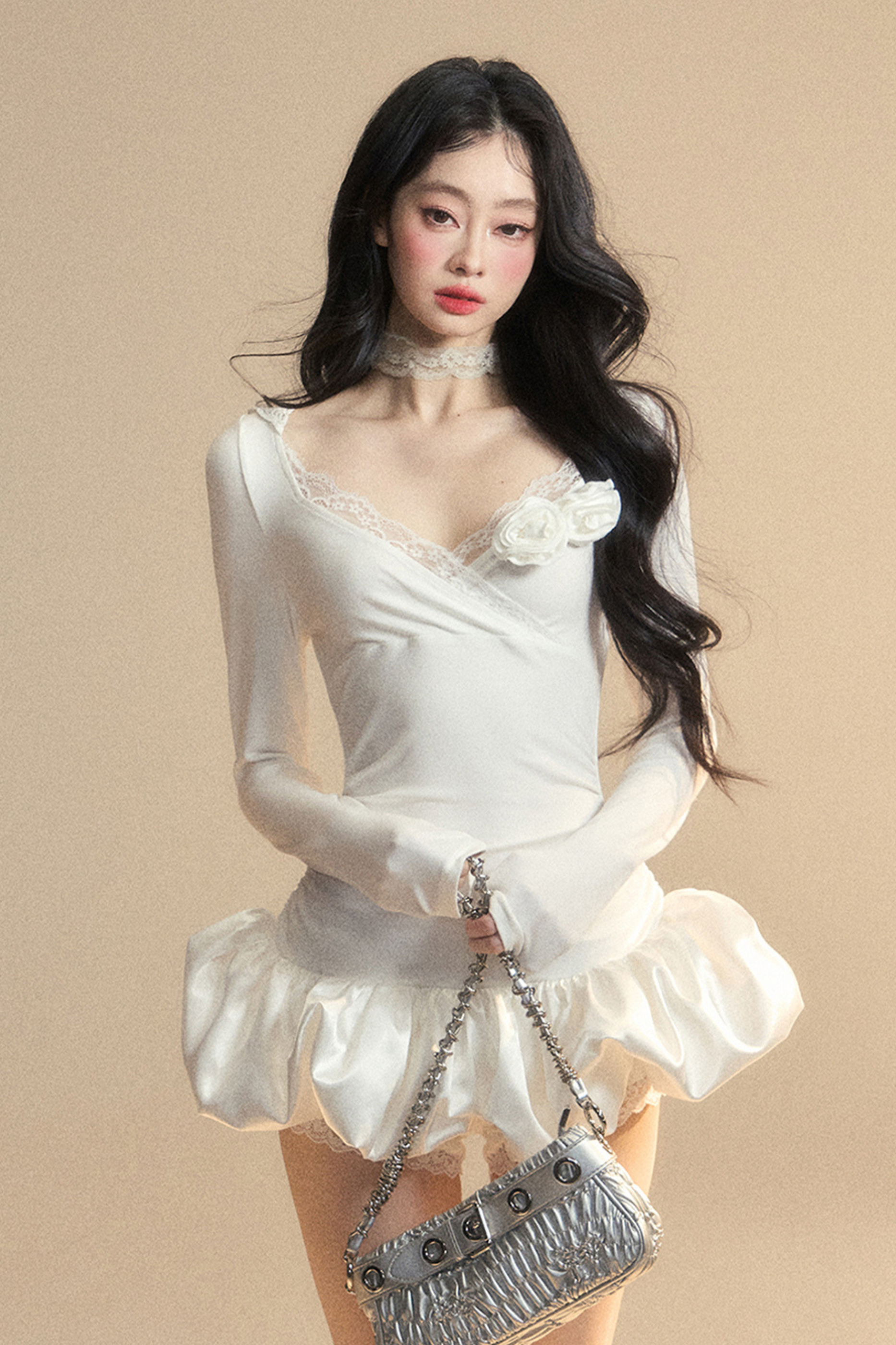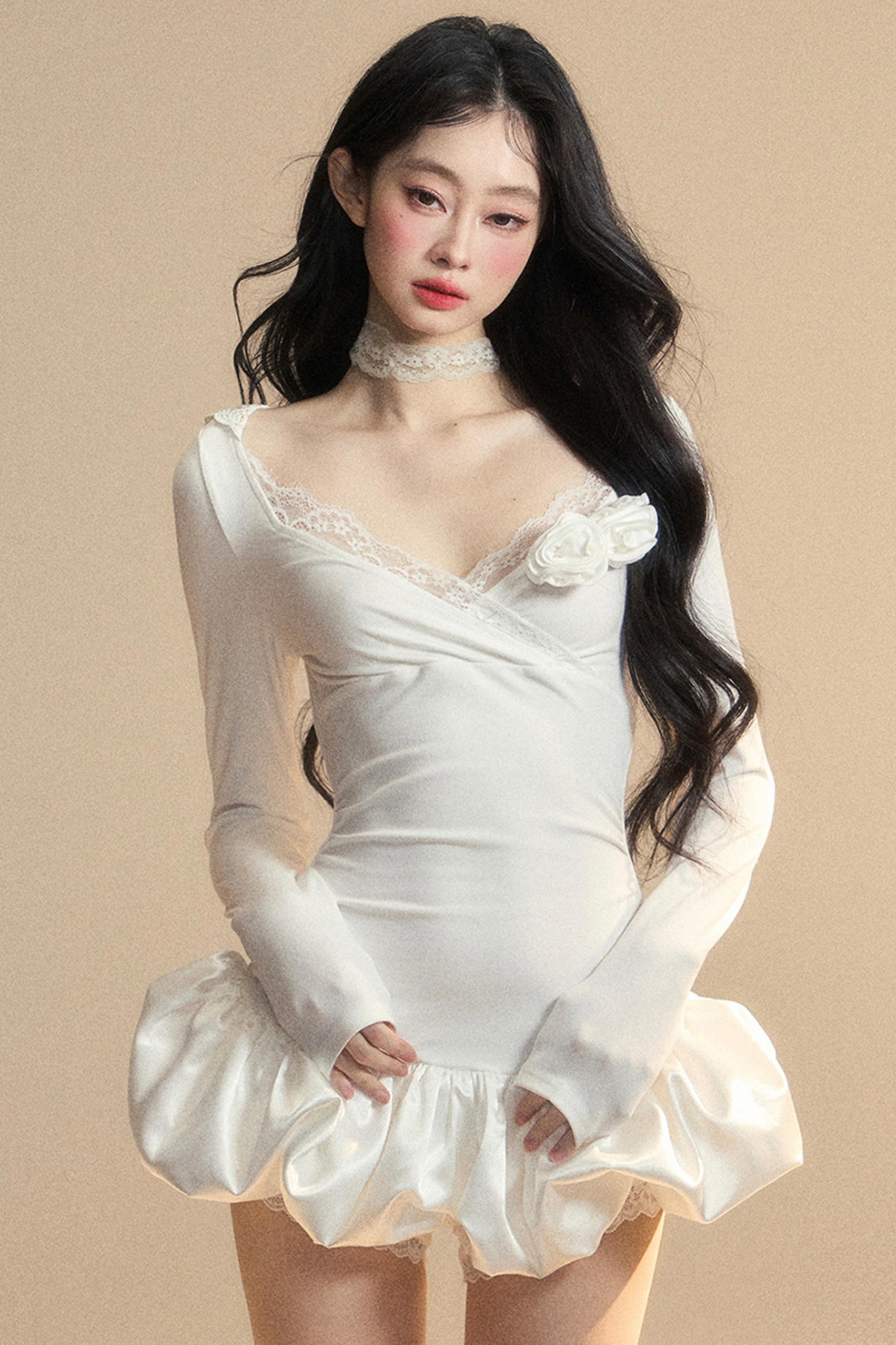 青と白のオールドスクールロリータファッションドレス 蝶結びディテール JSK セット