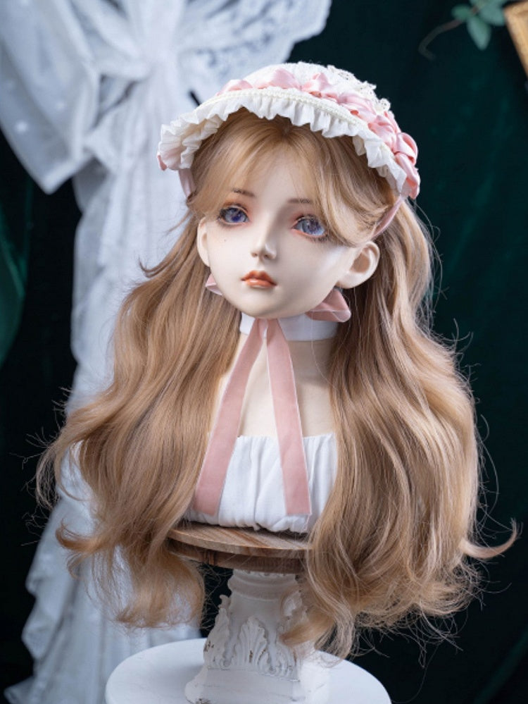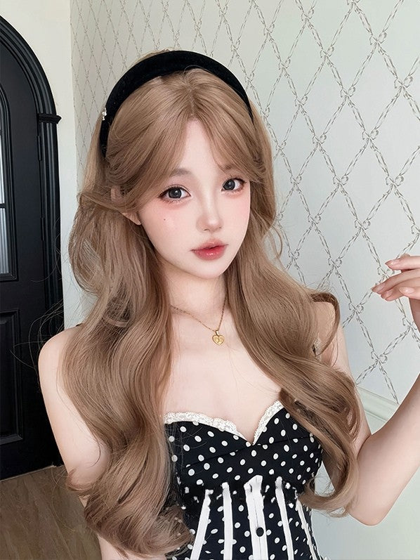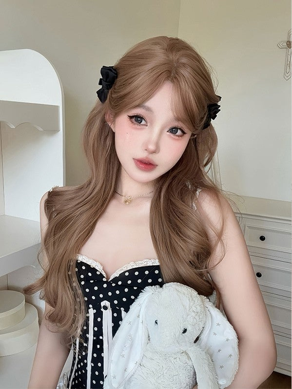 ライトブラウン 70cm 長さウェーブウィッグ カーテンバング付き