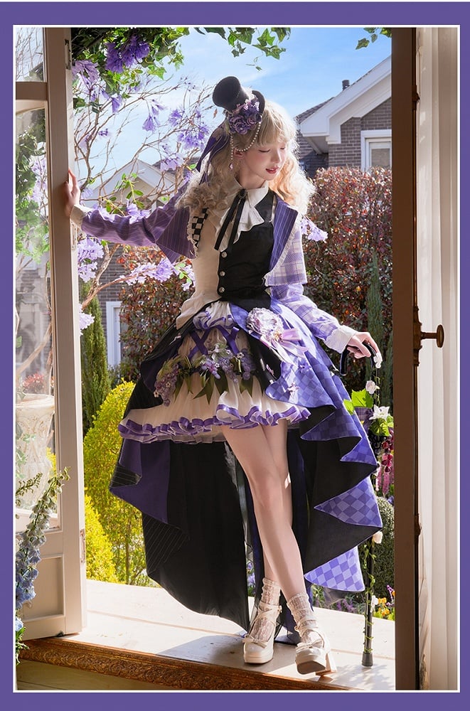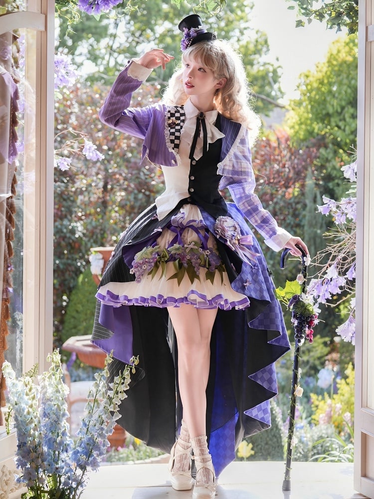 パープルバイエルンスタイルロリータフルセット - コルセットトップ / スカート / クロップドブレザー / ウエストコートオクトーバーフェスト衣装