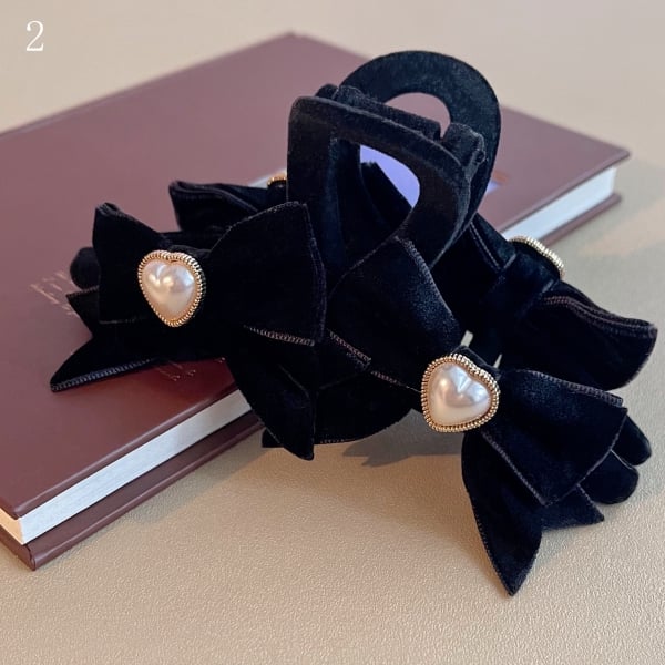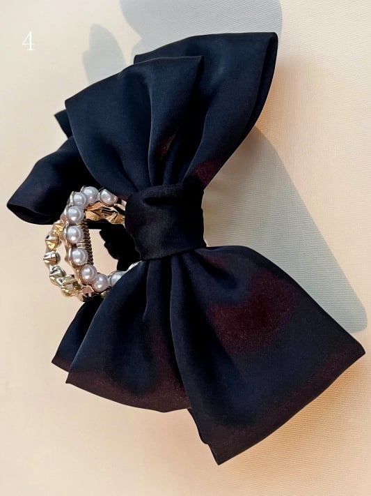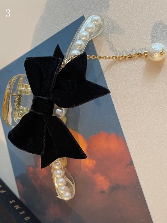 黒のビーズで飾られた蝶結びの爪クリップ