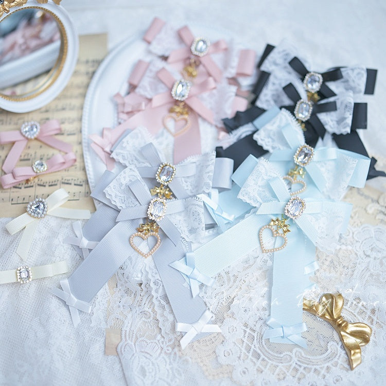 ビーズハートチャーム ジライケイ レースボウ ヘアクリップ ダスティブルー/ダスティピンク/ブルー/ブラック